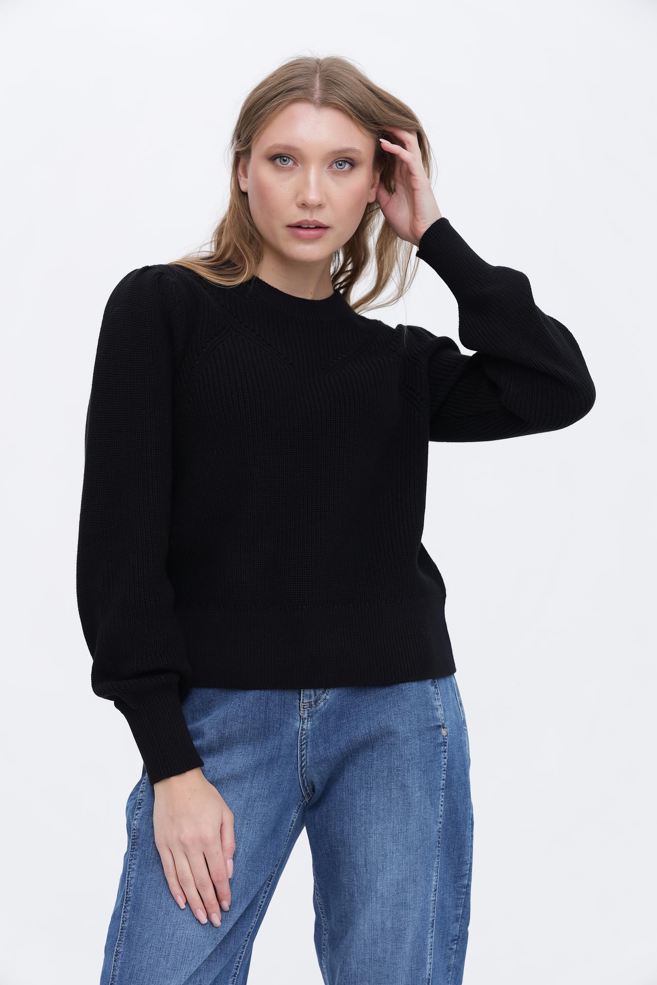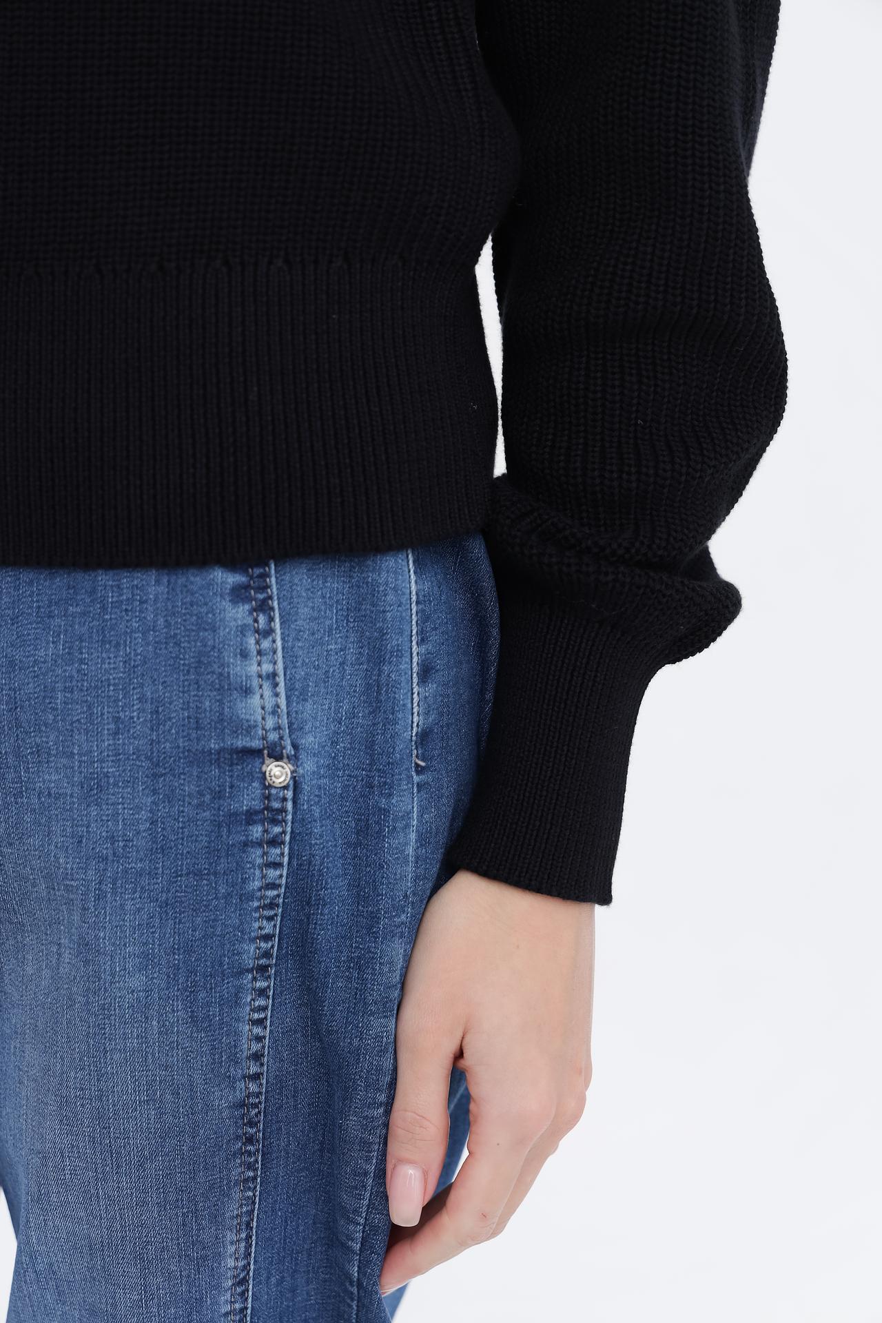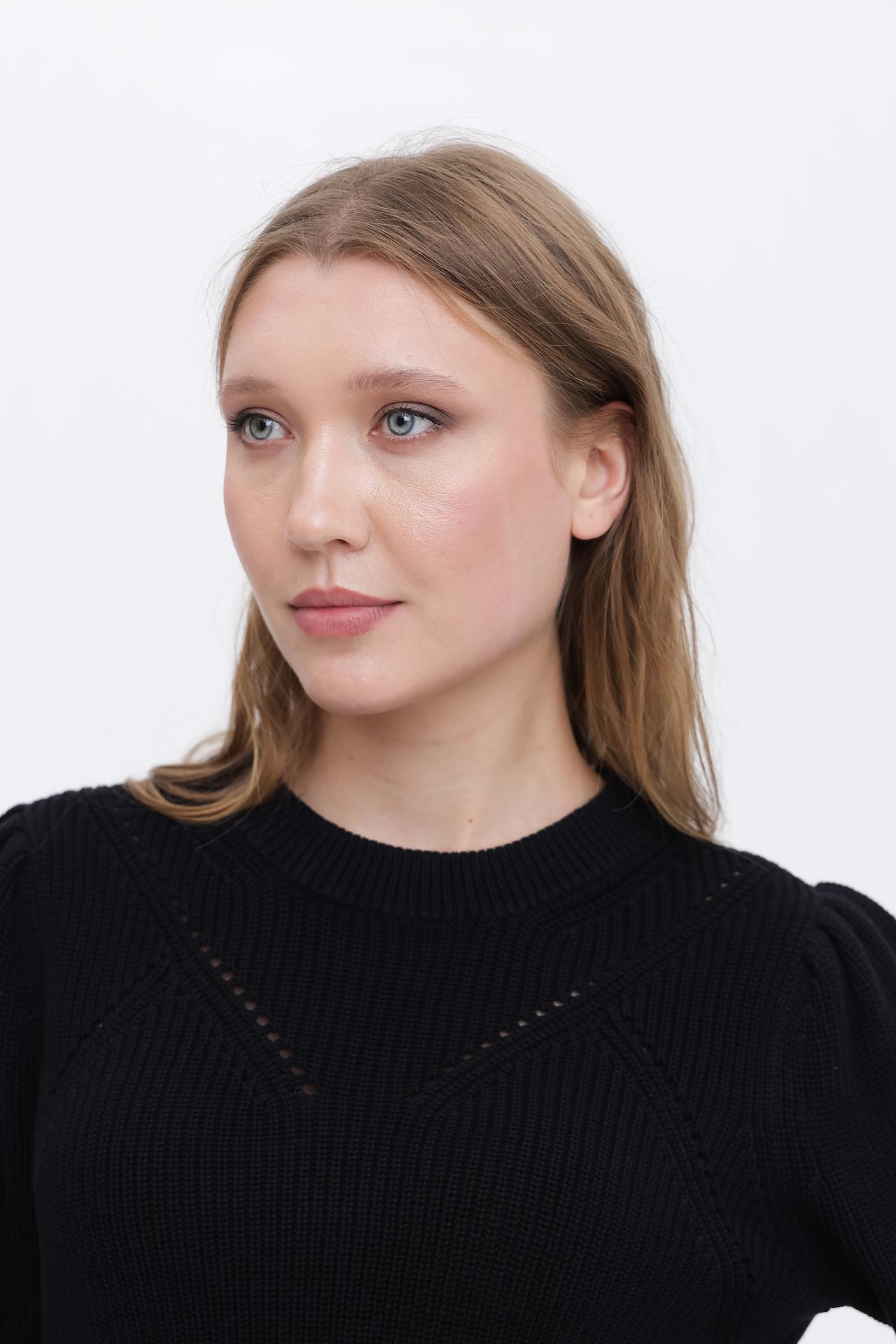 - Универсальность: Черный пуловер прекрасно подходит как для создания расслабленных кэжуал образов с джинсами, так и для более элегантных комплектов с юбками или классическими брюками.
