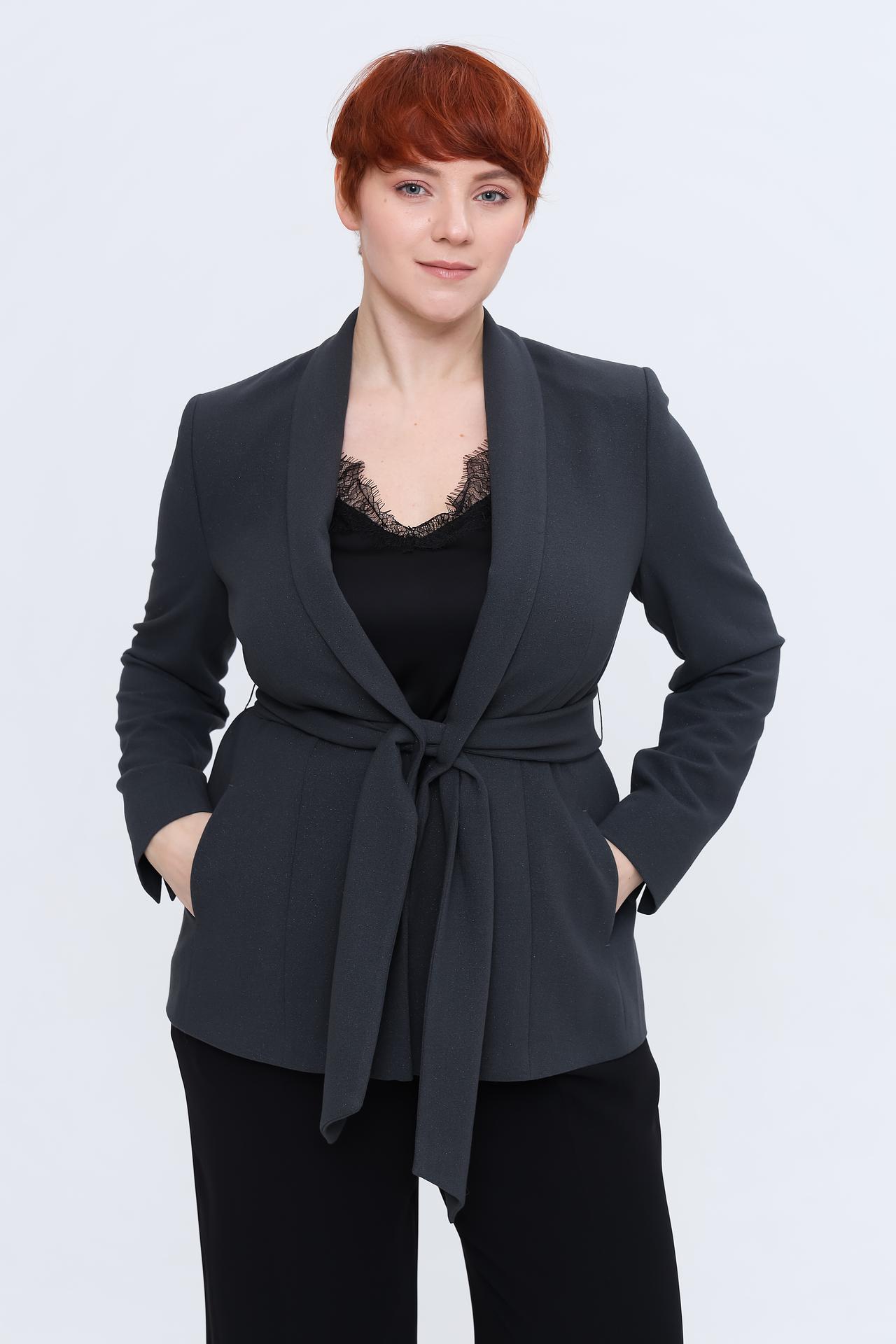 - Универсальность: Жакет прекрасно сочетается как с деловыми брюками и юбками, так и с джинсами, позволяя создавать разнообразные образы для любого случая.