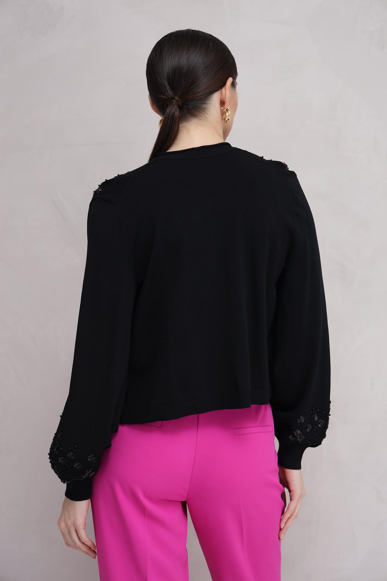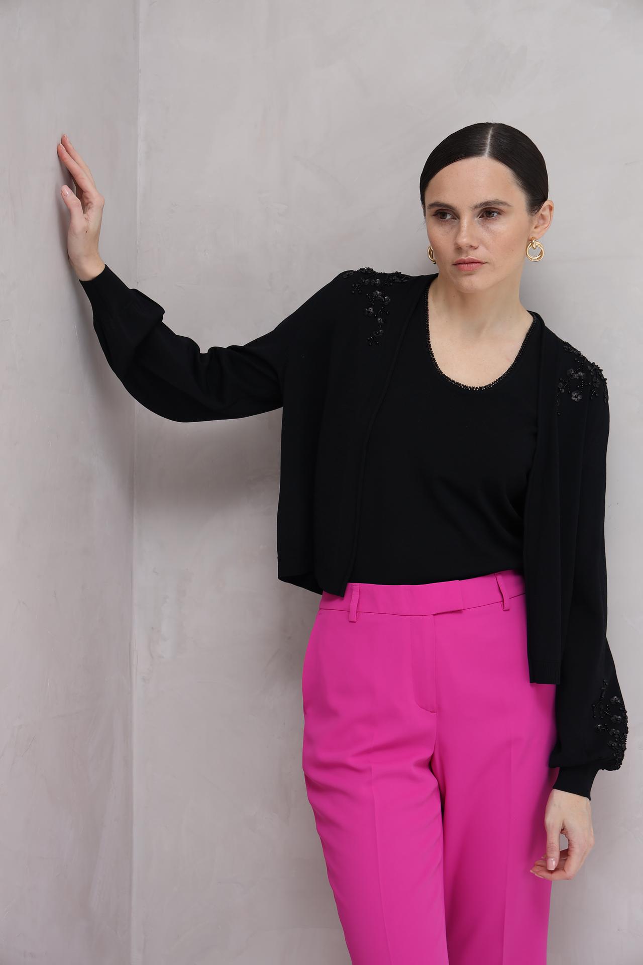 - Универсальность: Черный цвет и лаконичный силуэт делают жакет подходящим для любого случая, от повседневных выходов до торжественных мероприятий.