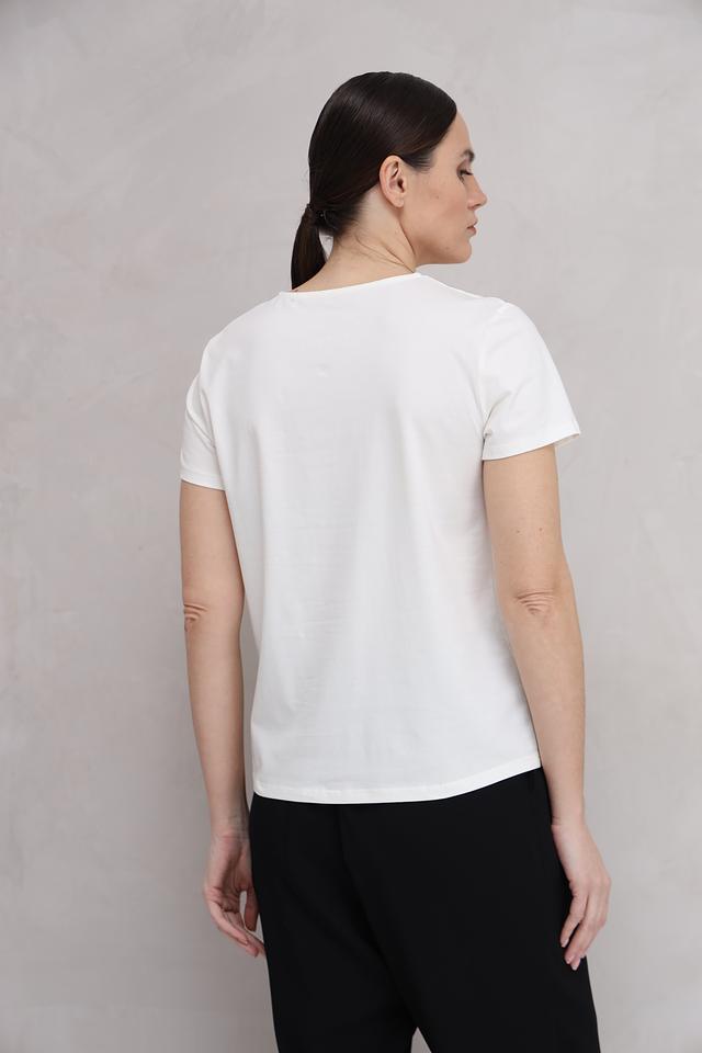 Состав футболки: 95% хлопок, 5% эластан. Это сочетание материалов обеспечивает приятные тактильные ощущения и хорошую посадку по фигуре. Футболка проста в уходе и долго сохраняет свой первоначальный вид.