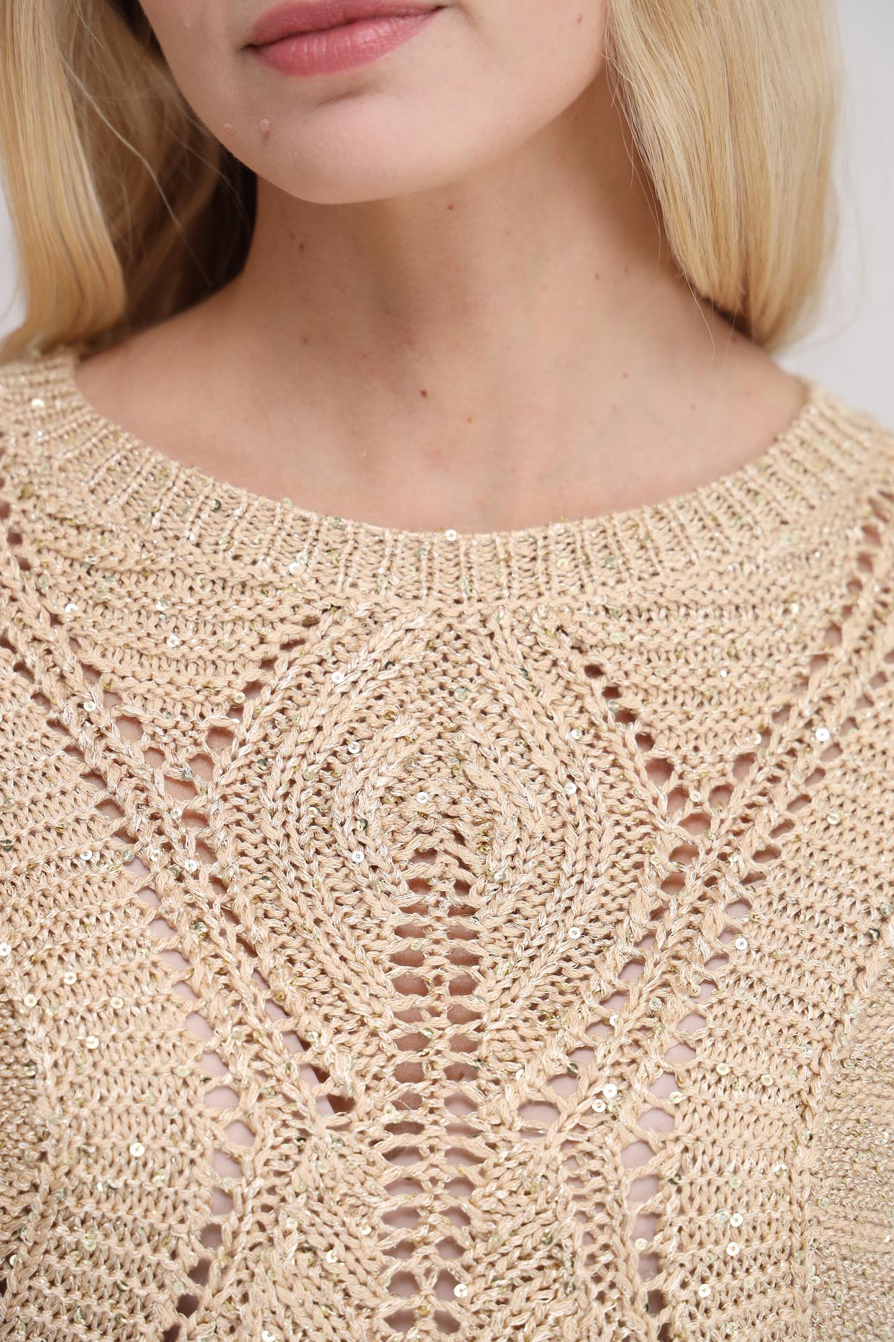 Изысканный бежевый цвет и уникальный ажурный узор делают его универсальным выбором для любого случая. Пуловер невероятно приятен к телу, обеспечивая комфорт в течение всего дня.