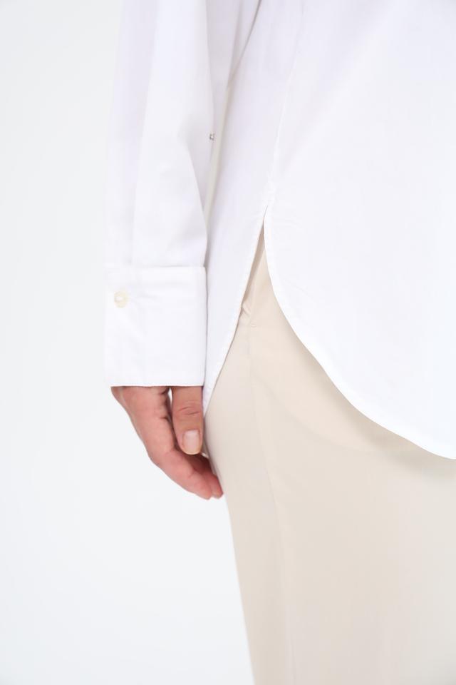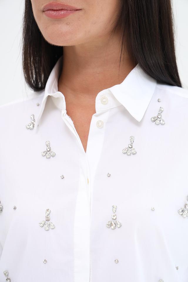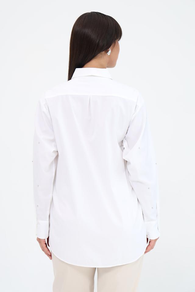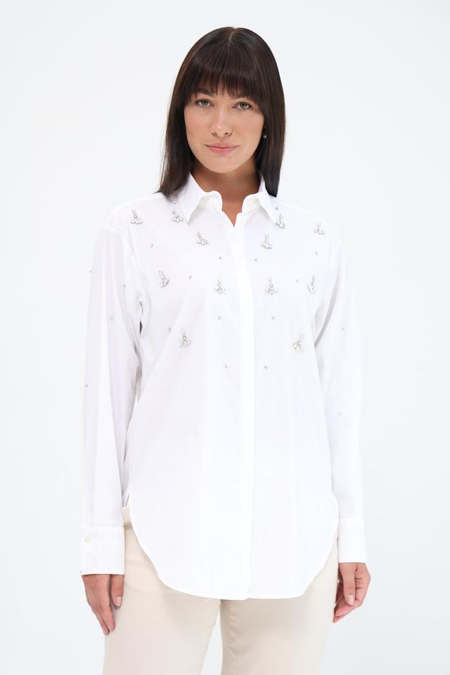 Особенностью данной модели является деликатная вышивка, расположенная на передней части и рукавах. Вышивка придает рубашке изысканность и оригинальность, делая ее подходящей как для повседневной носки, так и для особых случаев.