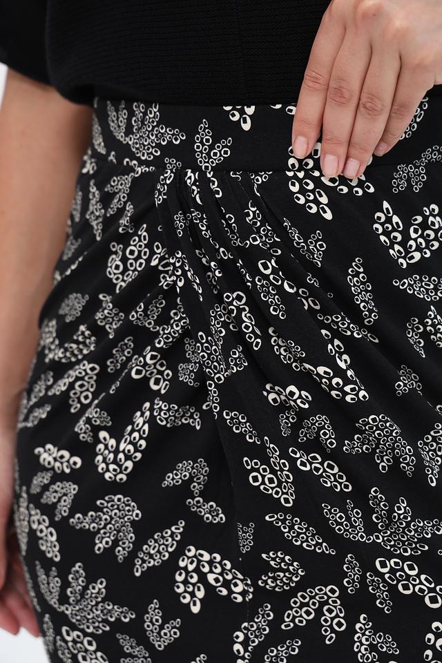 Юбка Taifun чёрного цвета с оригинальным цветочным принтом – стильное и комфортное решение для создания элегантного образа. Изготовлена из мягкой вискозы с добавлением эластана, обеспечивающего удобную посадку. Состав: вискоза 95%, эластан 5%