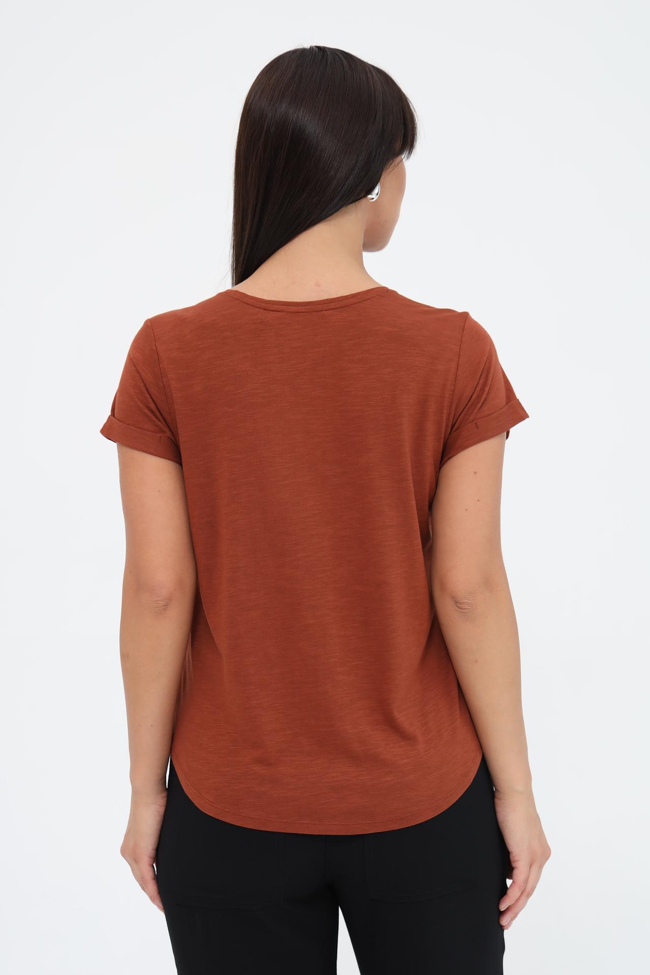 - Яркий оттенок. Насыщенный оранжевый цвет футболки освежает образ и добавляет ярких акцентов в любой летний или демисезонный гардероб. Этот оттенок легко сочетается с нейтральными и контрастными тонами.