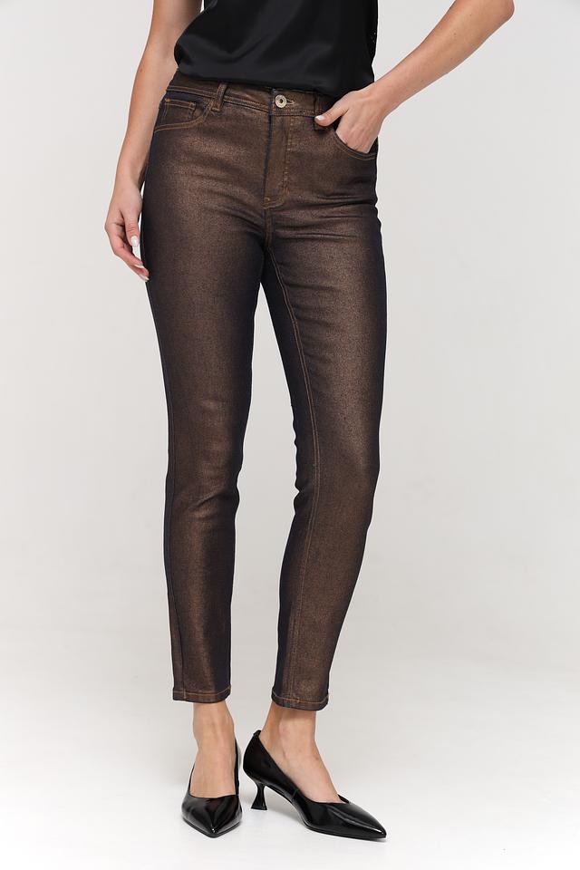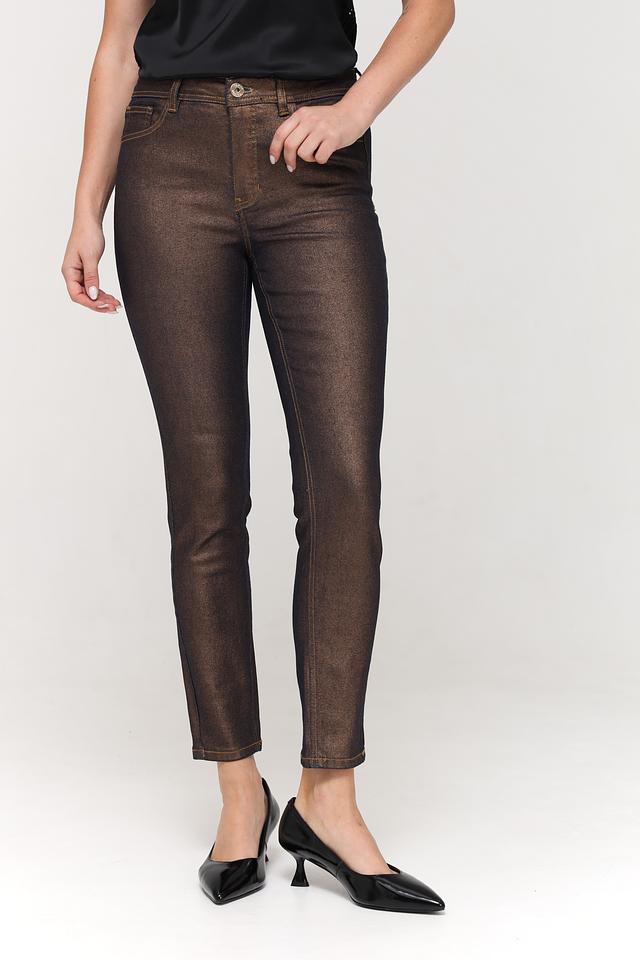 Женские джинсы Taifun бронзового цвета с эффектом металлик. Модель выполнена из хлопка с добавлением полиэстера и эластана для комфорта и лучшей посадки. Состав: хлопок 68%, полиэстер 30%, эластан 2%
