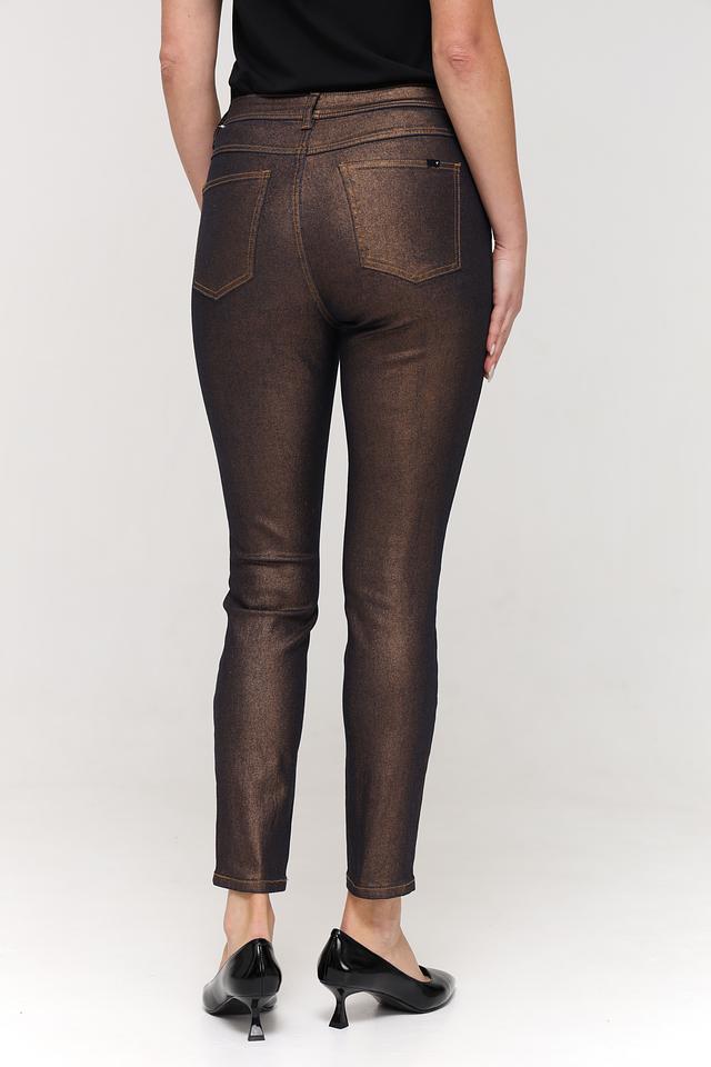 Эти стильные джинсы от Taifun станут ярким акцентом вашего образа. Модель выполнена в необычном бронзовом цвете с эффектом металлизированного блеска, что придает ей особый шарм.