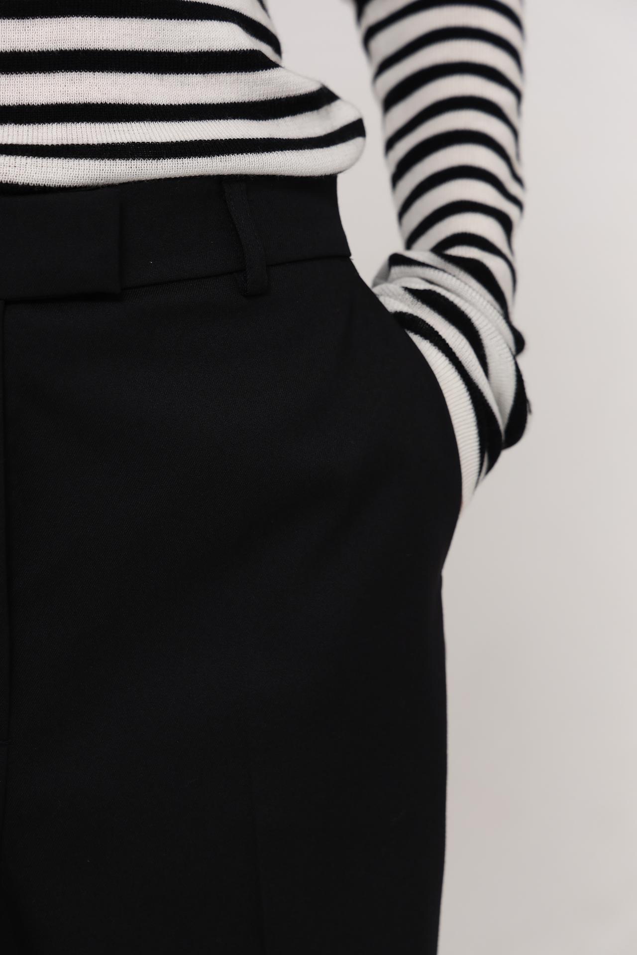 - Универсальность: Черный цвет и лаконичный дизайн позволяют легко сочетать брюки с различными блузами, рубашками и жакетами, создавая как деловые, так и повседневные ансамбли.