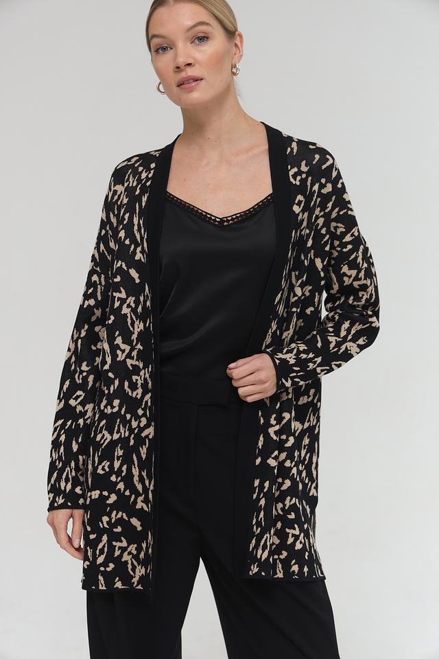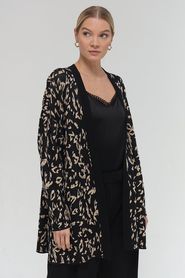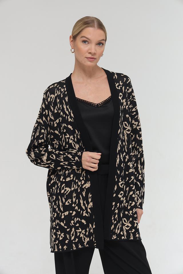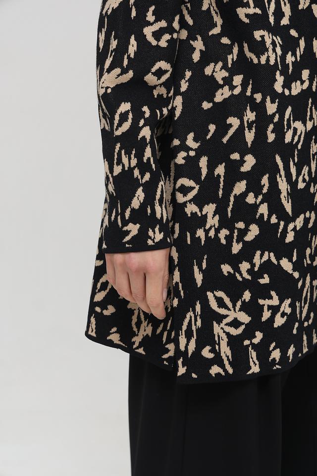 Жакет Taifun чёрно-бежевого цвета с оригинальным леопардовым принтом. Изготовлен из мягкого и приятного к телу трикотажа, состоящего из хлопка, вискозы и полиамида. Состав: хлопок 69%, вискоза 20%, полиамид 11%