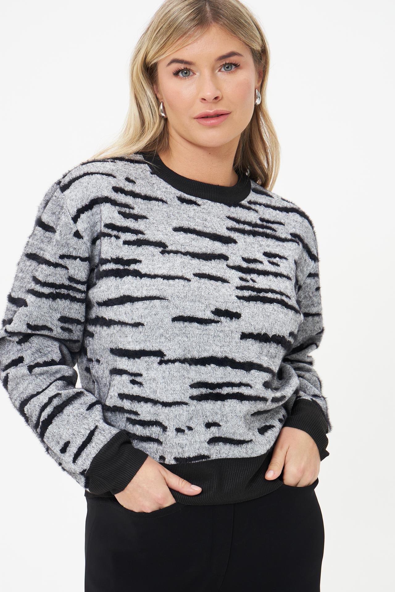 Стильный пуловер от Taifun — идеальный выбор для создания эффектных и современных образов. Модель выполнена в универсальном сером цвете с оригинальным черным принтом, напоминающим шкуру тигра. Актуальный крой и приятная на ощупь ткань делают этот пуловер незаменимым элементом гардероба.