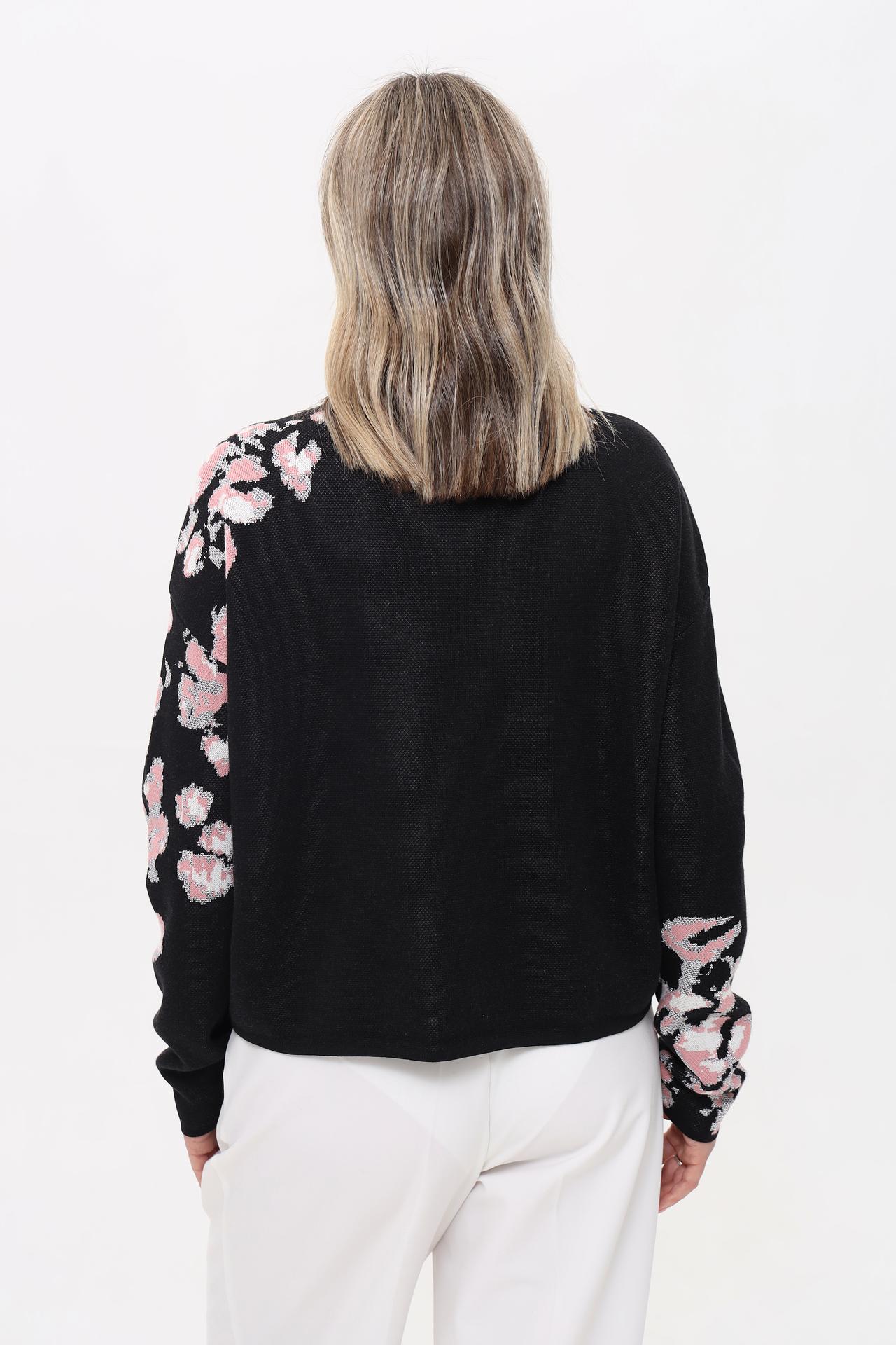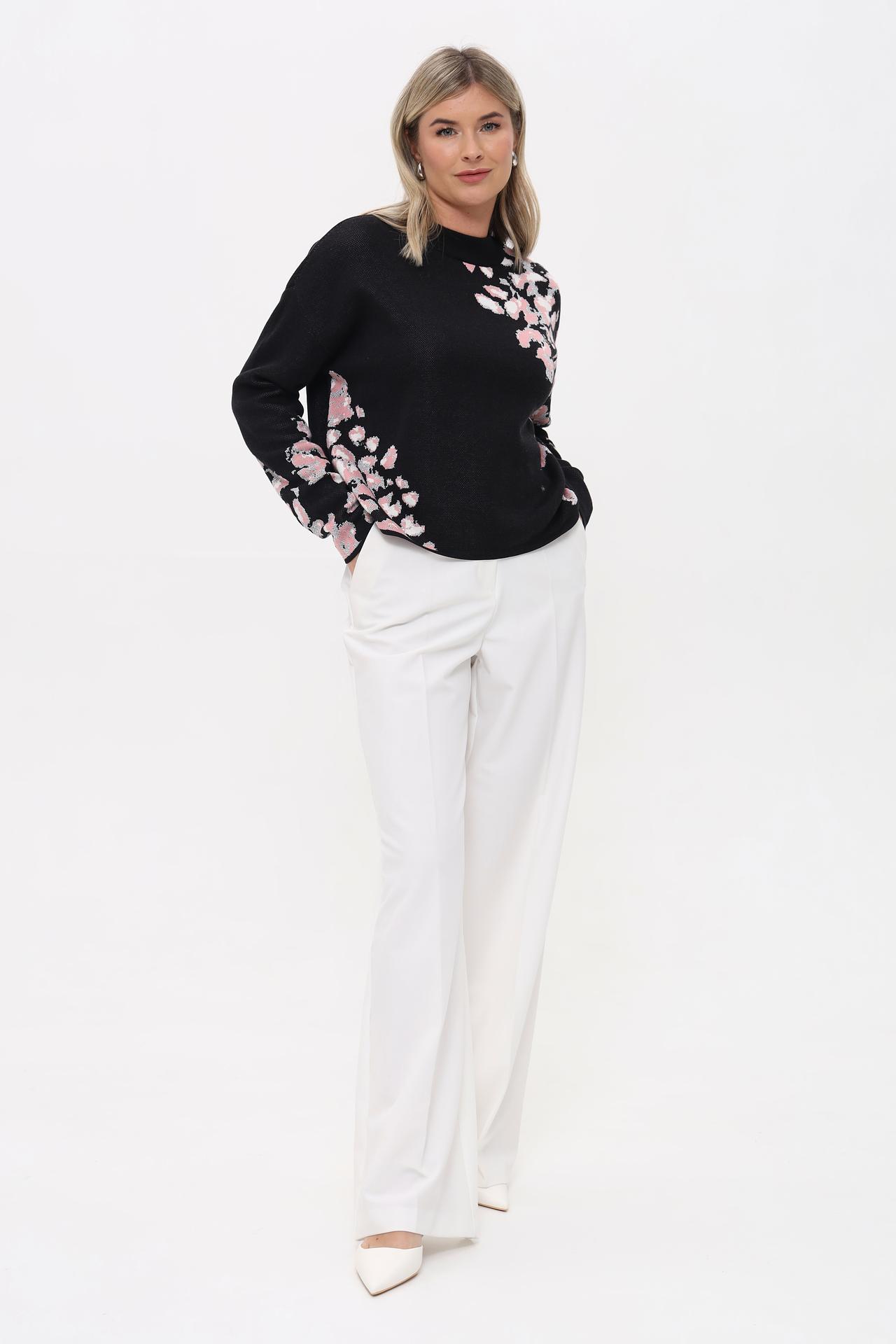 Элегантный черный пуловер от Taifun станет стильным дополнением вашего гардероба. Оригинальный принт в виде нежных розовых и серебристых цветов добавляет модели женственности и изысканности. Пуловер выполнен из качественной смесовой ткани, которая обеспечивает комфорт и приятные тактильные ощущения.
