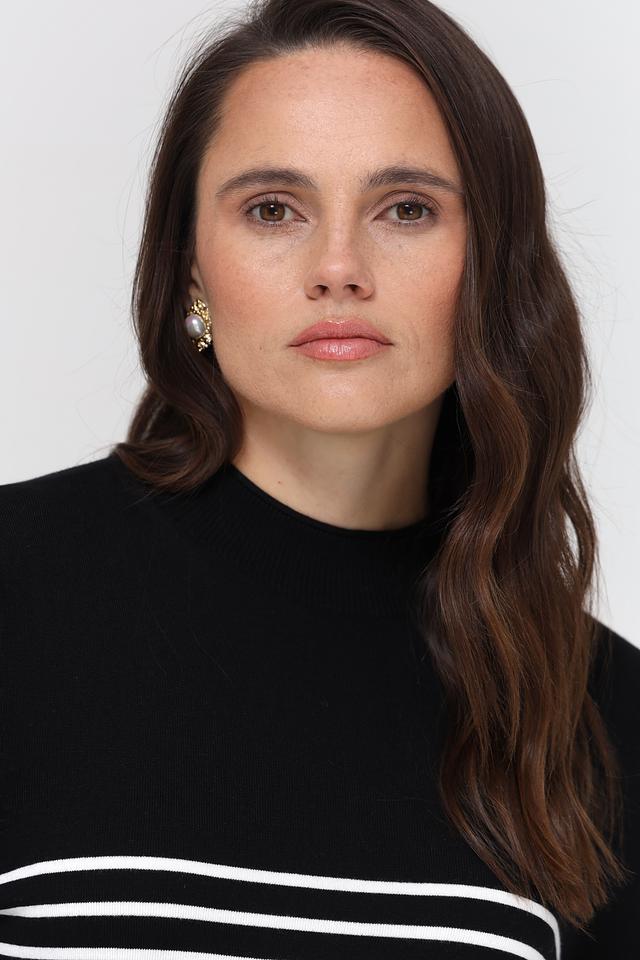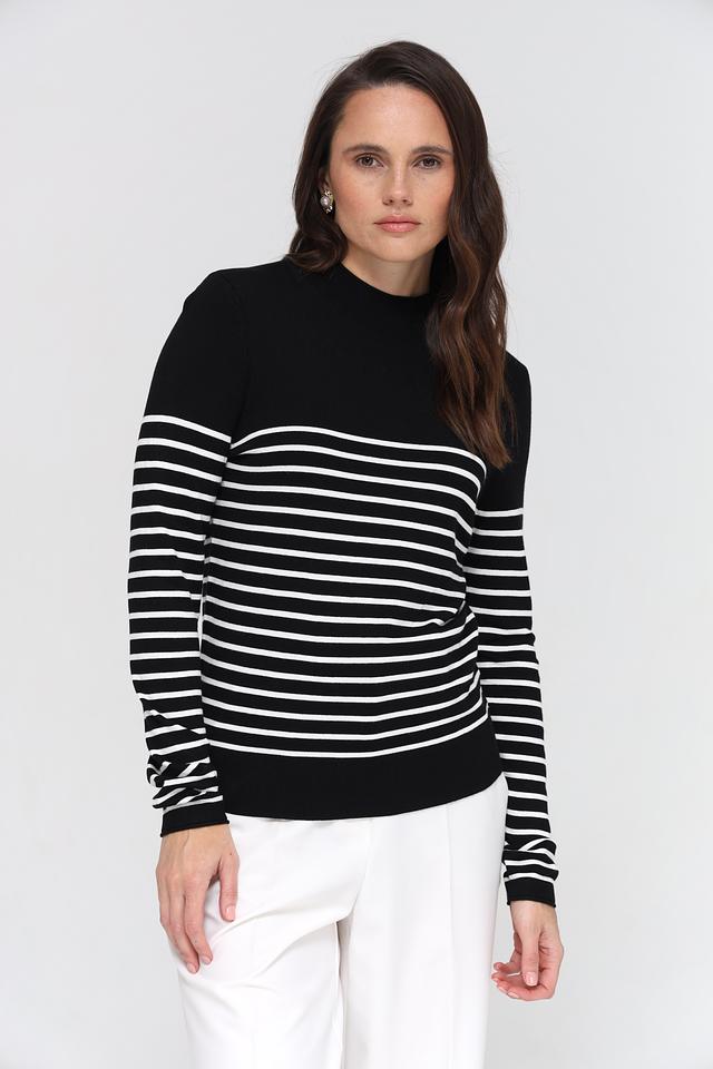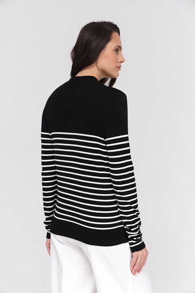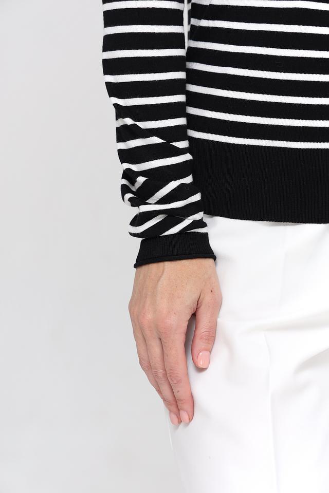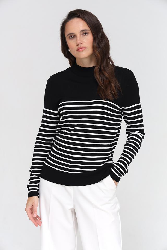 Женский пуловер Taifun чёрного цвета с белыми полосами – стильная и комфортная модель на каждый день. Изготовлен из мягкой вискозы с добавлением полиамида для сохранения формы. Состав: вискоза (эко) 80%, полиамид 20%