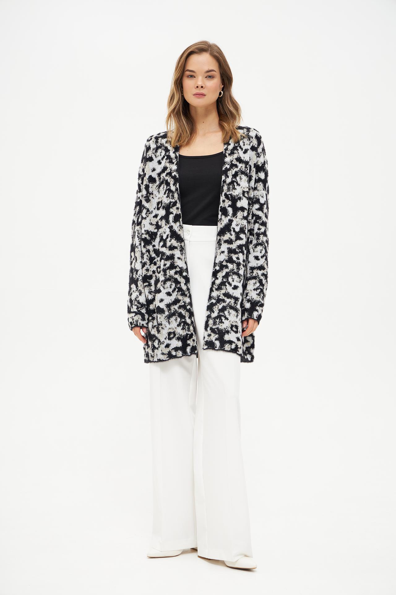 - Дизайн: Современный кардиган прямого кроя с открытым воротом и леопардовым принтом. Идеально подходит для создания эффектных образов.