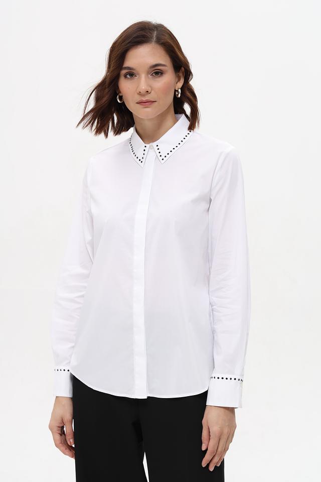 Особый акцент в дизайне – декоративная отделка в виде мелких черных точек на воротнике и манжетах, придающая рубашке изысканность и оригинальность. Рубашка идеально подойдет для работы, учебы или повседневной носки.