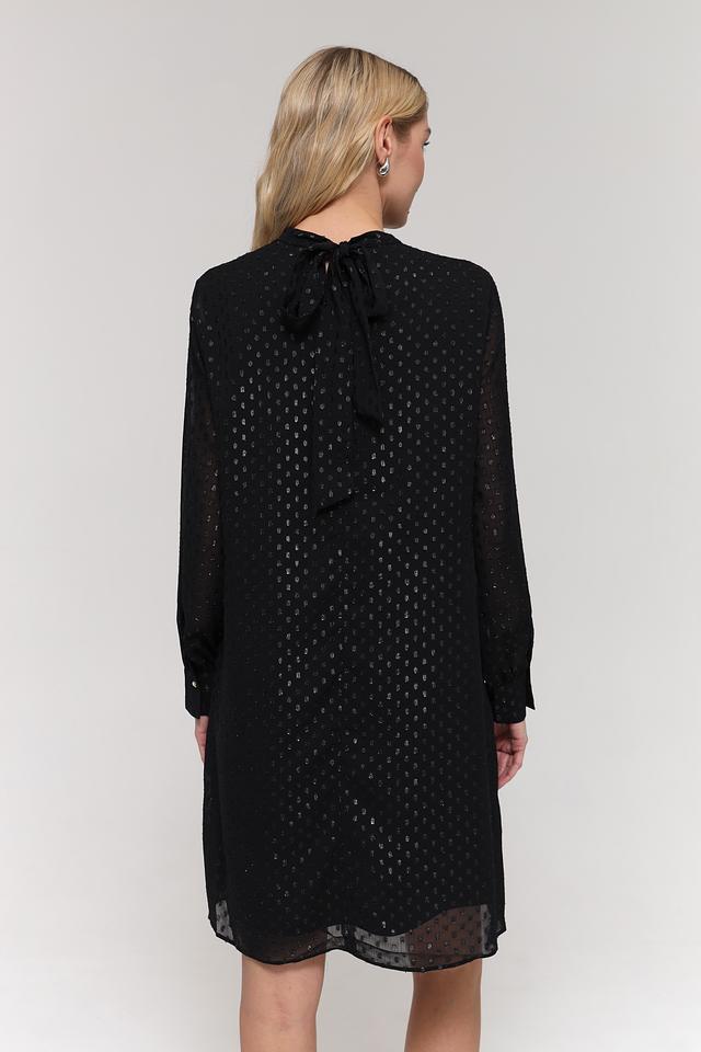 Платье изготовлено из 100% полиэстера, что обеспечивает комфорт в носке и простоту ухода. Ткань с деликатным узором создает эффектный визуальный интерес. Свободный крой платья позволяет чувствовать себя комфортно в течение всего дня.
