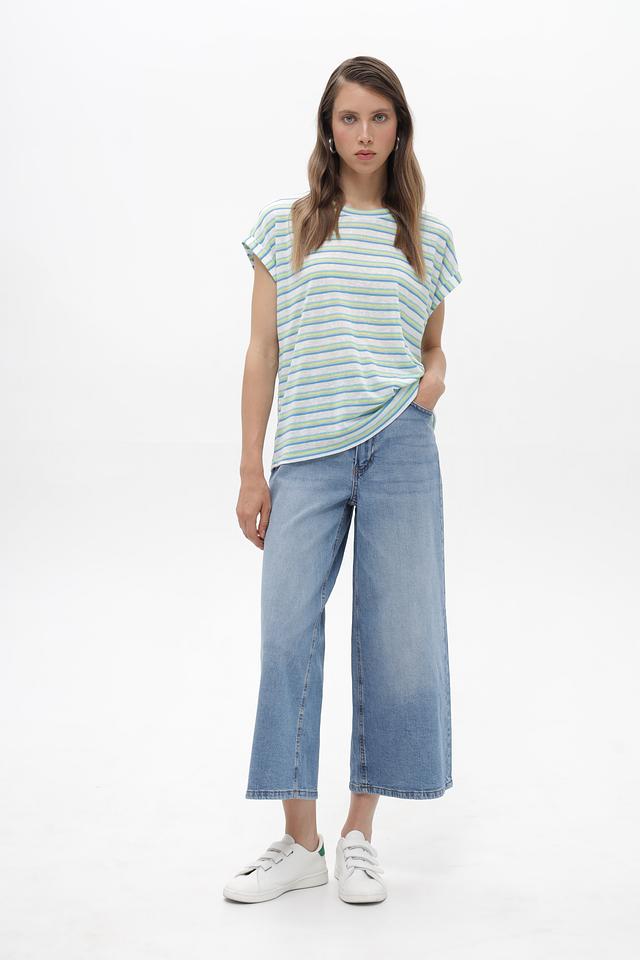 Представляем вашему вниманию стильные джинсы от бренда Taifun. Эта модель выполнена в актуальном голубом цвете и имеет клёш, который придаёт образу лёгкость и непринуждённость.