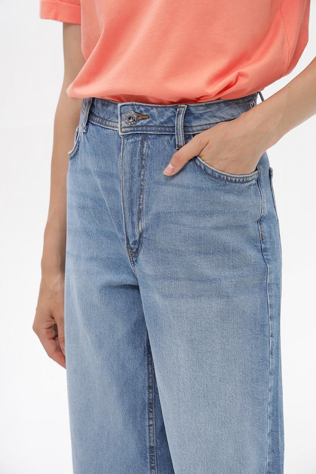 Джинсы изготовлены из высококачественного хлопка (99%) с добавлением эластана (1%), что обеспечивает комфортную посадку и свободу движений. Высокая посадка визуально удлиняет ноги и подчеркивает талию.