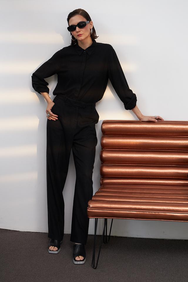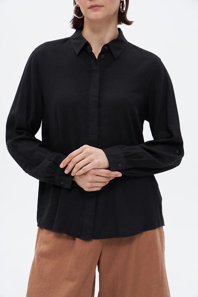 Материал блузы приятен к телу, хорошо дышит и не мнется. Она идеально подходит для создания как повседневных, так и более формальных образов. Блузу можно сочетать с брюками, юбками или джинсами.