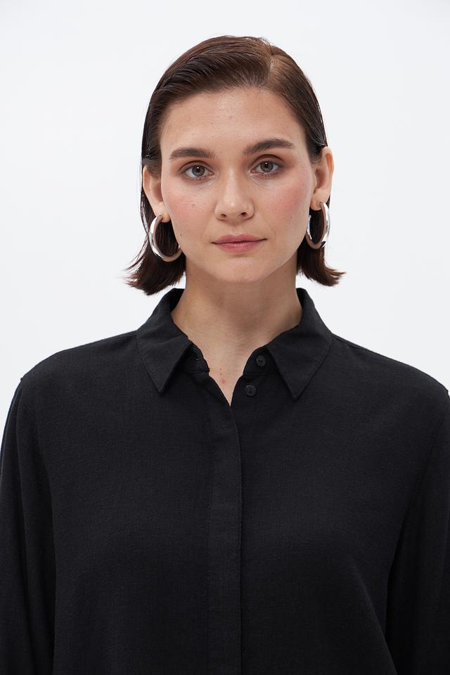 Эта блуза от Taifun выполнена в классическом чёрном цвете и станет незаменимой частью вашего гардероба. Она сочетает в себе элегантность и практичность, благодаря составу из 70% вискозы и 30% льна.