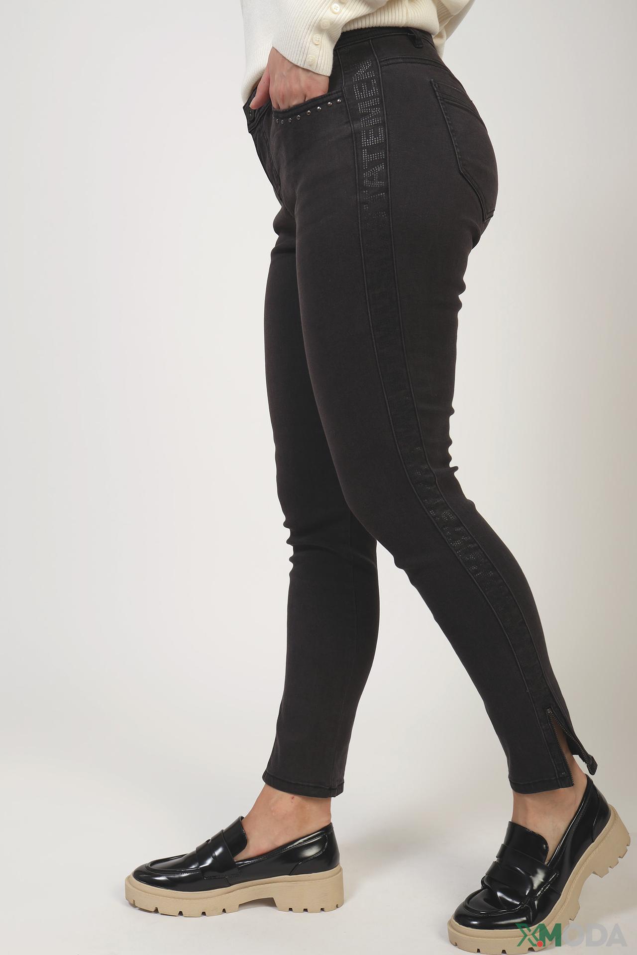 - Дизайн: Элегантный серый цвет, заклепки на передних карманах и декоративная строчка по боковым швам придают джинсам особый шарм.