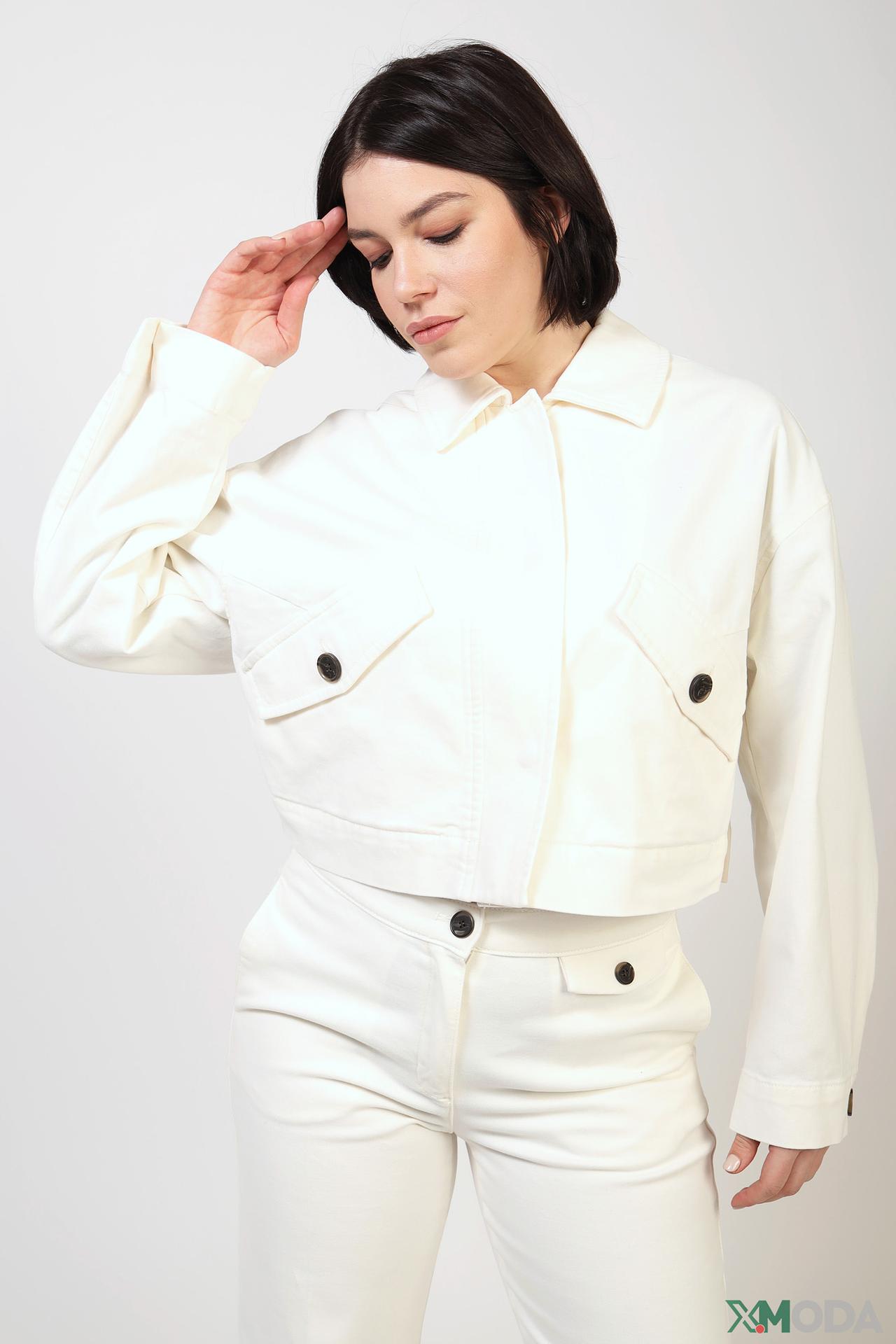 Благодаря добавлению эластана, жакет хорошо тянется и не сковывает движения. Укороченный крой делает модель актуальной и современной, а лаконичный дизайн позволяет сочетать его с различными предметами гардероба. Прекрасно подходит для создания повседневного образа, на деловую встречу или свидание.