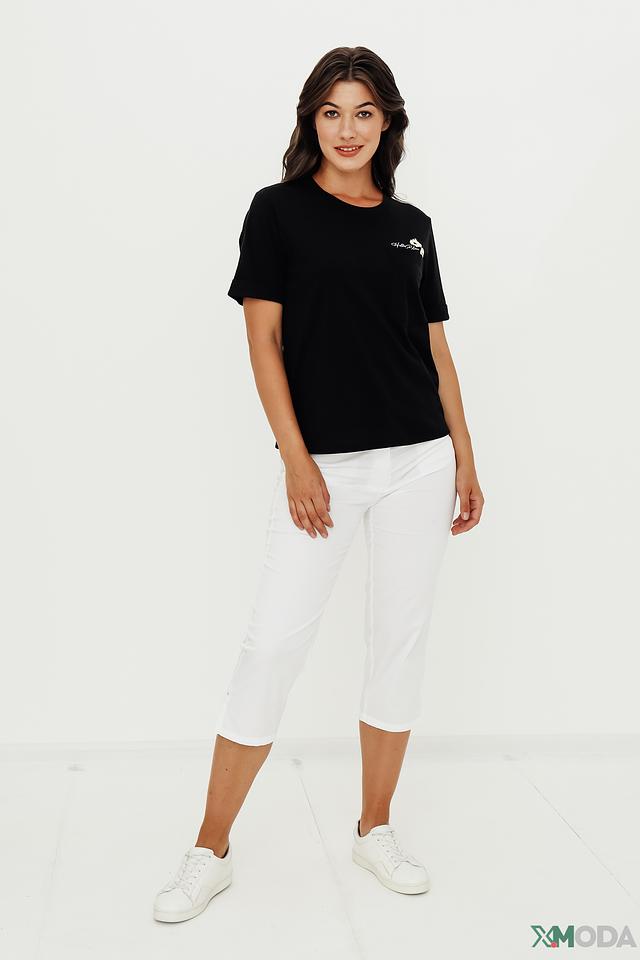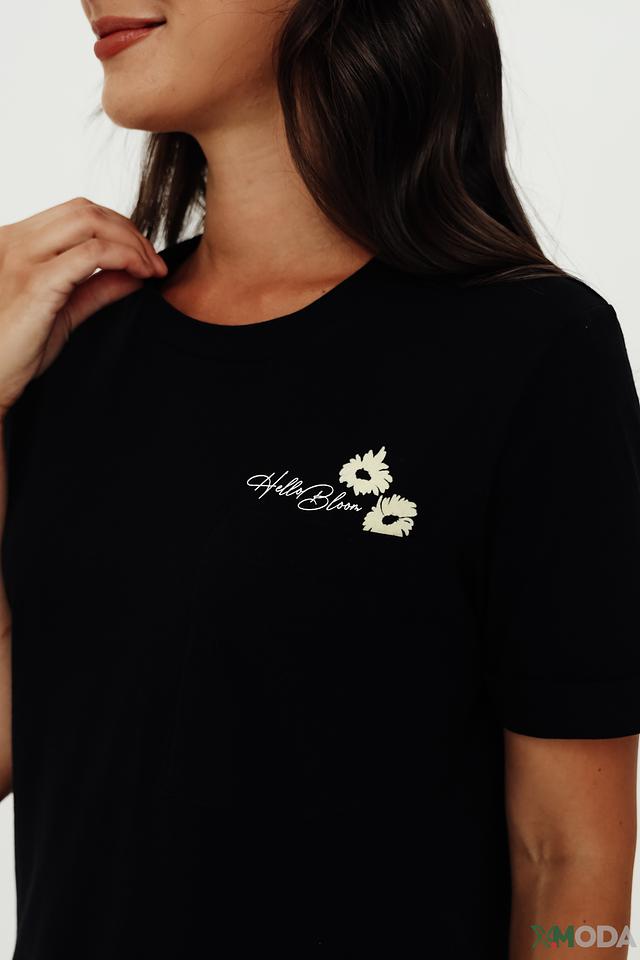 Футболка имеет классический прямой крой, который подходит для любой фигуры. Короткие рукава с манжетами добавляют образу аккуратности и завершенности. На передней части футболки расположен оригинальный цветочный принт, который придает ей индивидуальность и стиль.