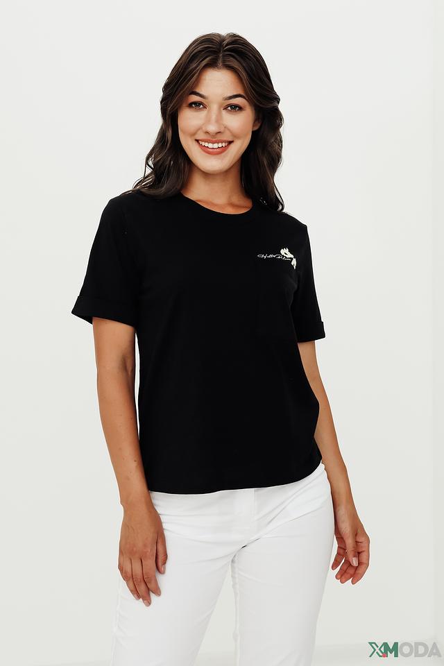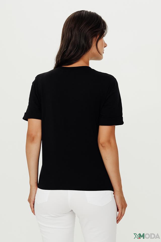 Чёрная футболка Taifun из 100% органического хлопка с цветочным принтом. Модель имеет прямой крой и короткие рукава с манжетами, что придает ей более аккуратный вид. Состав: хлопок органич. 100%