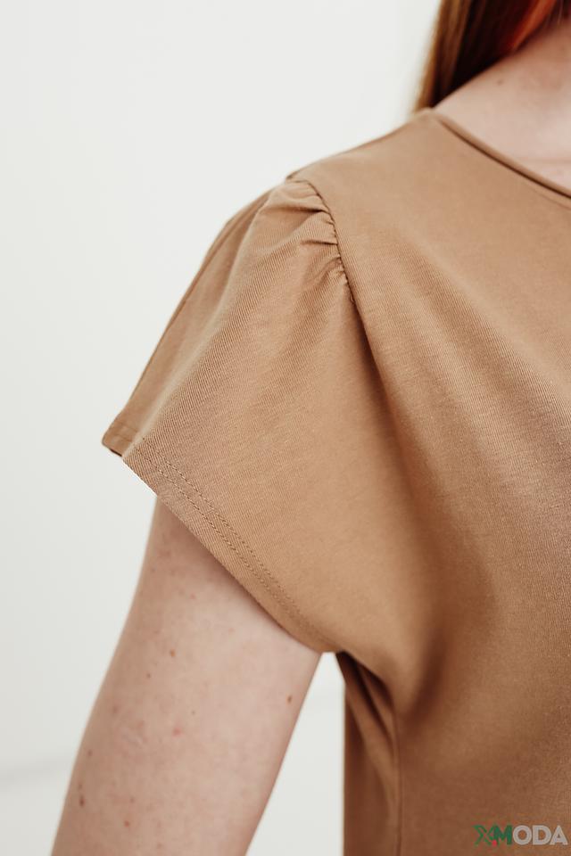 Круглый вырез горловины и короткие рукава делают футболку удобной и практичной. Небольшие воланы на плечах добавляют женственности образу. Футболка идеально подходит для прогулок, встреч с друзьями или активного отдыха. Состав: 95% органический хлопок, 5% эластан.