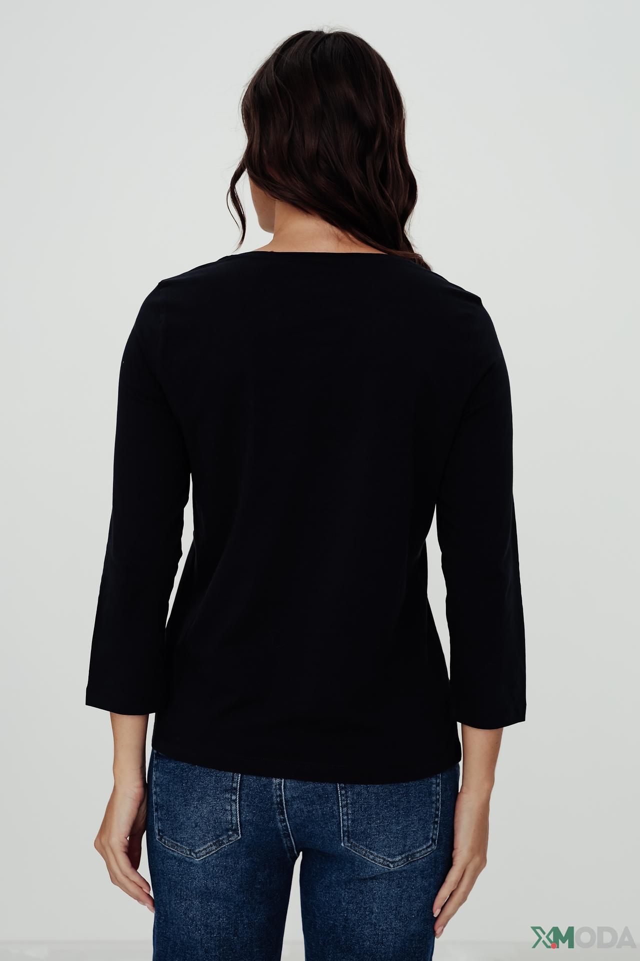 - Дизайн: классический круглый вырез и длинные рукава делают лонгслив универсальным. Центральным элементом является яркий принт с надписью, декорированный переливающимися пайетками, которые привлекают внимание и придают образу праздничность.