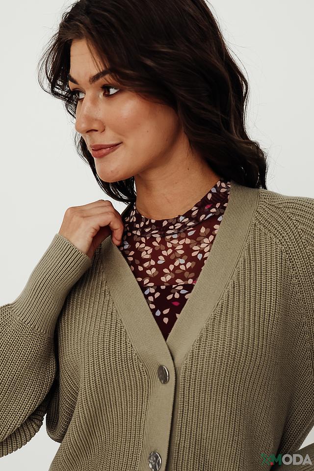 Женский кардиган Taifun оливкового цвета выполнен из мягкого органического хлопка и имеет застежку на пуговицы. Уютный и стильный, этот кардиган станет отличным дополнением к вашему гардеробу. Состав: хлопок органич. 100%