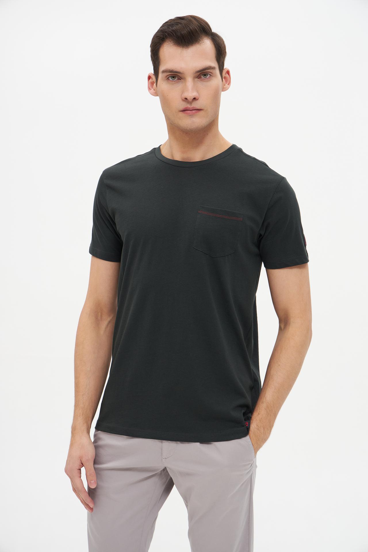 Темно-зеленая футболка Time Zone из 100% хлопка с карманом