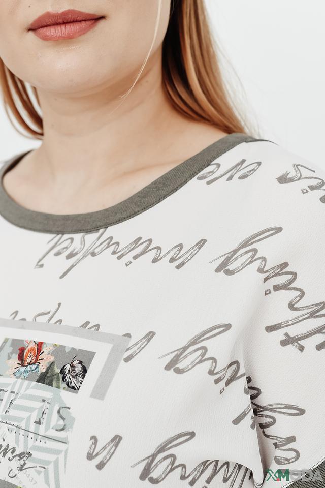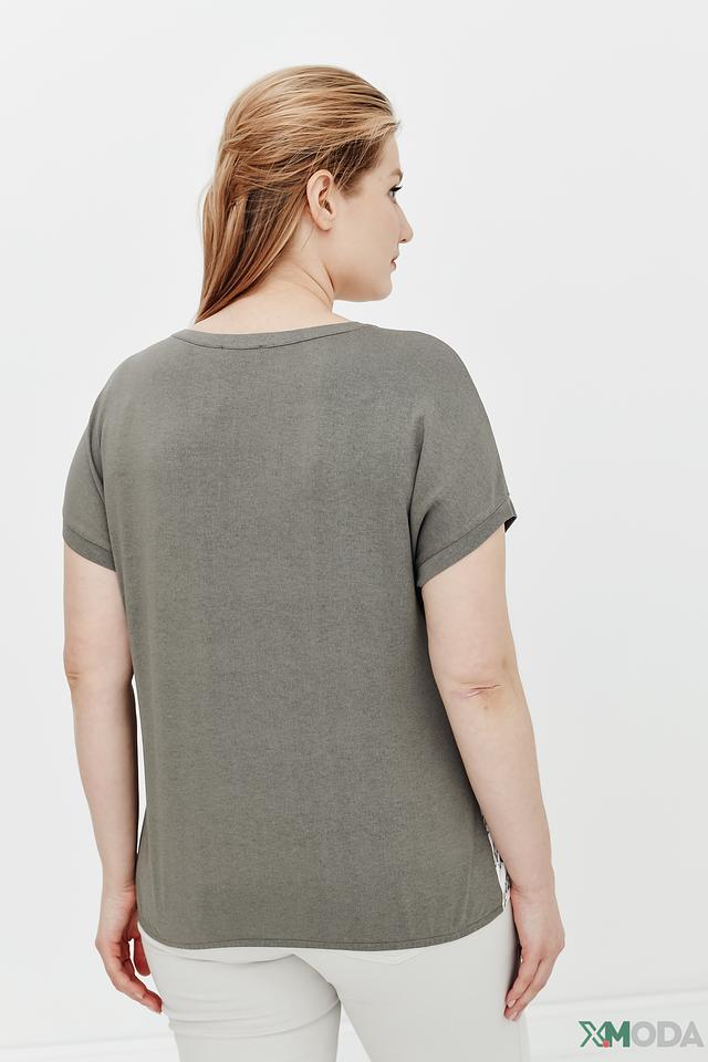 Блуза имеет прямой крой, короткие рукава и круглый вырез горловины. Она изготовлена из высококачественной вискозы, которая приятна к телу и хорошо дышит. Добавление полиэстера и эластана обеспечивает блузе устойчивость к деформации и комфорт при носке.