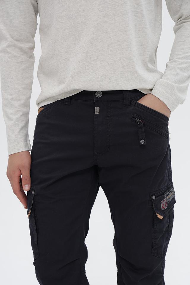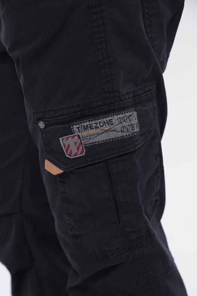 Мужские брюки карго Time Zone чёрного цвета, выполнены из хлопка с добавлением эластана для комфорта. Модель отличается функциональным дизайном с накладными карманами и стильной детализацией. Состав: хлопок 98%, эластан 2%
