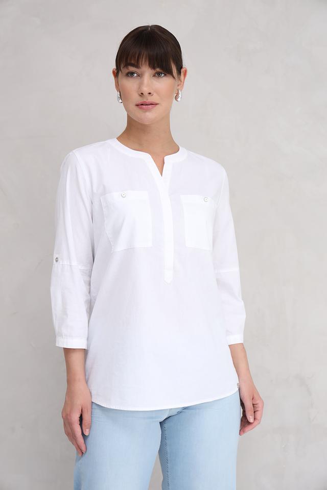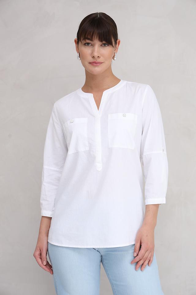 Эта блуза от Time Zone станет отличным дополнением к вашему гардеробу. Выполнена в белом цвете из приятной на ощупь ткани, состоящей из 88% хлопка и 12% льна.