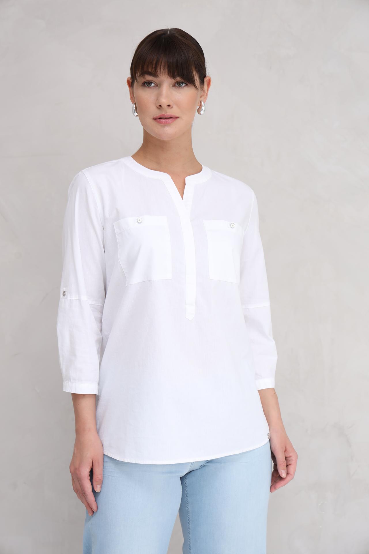 Стильная женская блуза Time Zone, созданная из высококачественной ткани (88% хлопка и 12% льна), подарит вам комфорт и безупречный внешний вид. Эта универсальная модель станет прекрасным дополнением к вашему гардеробу.