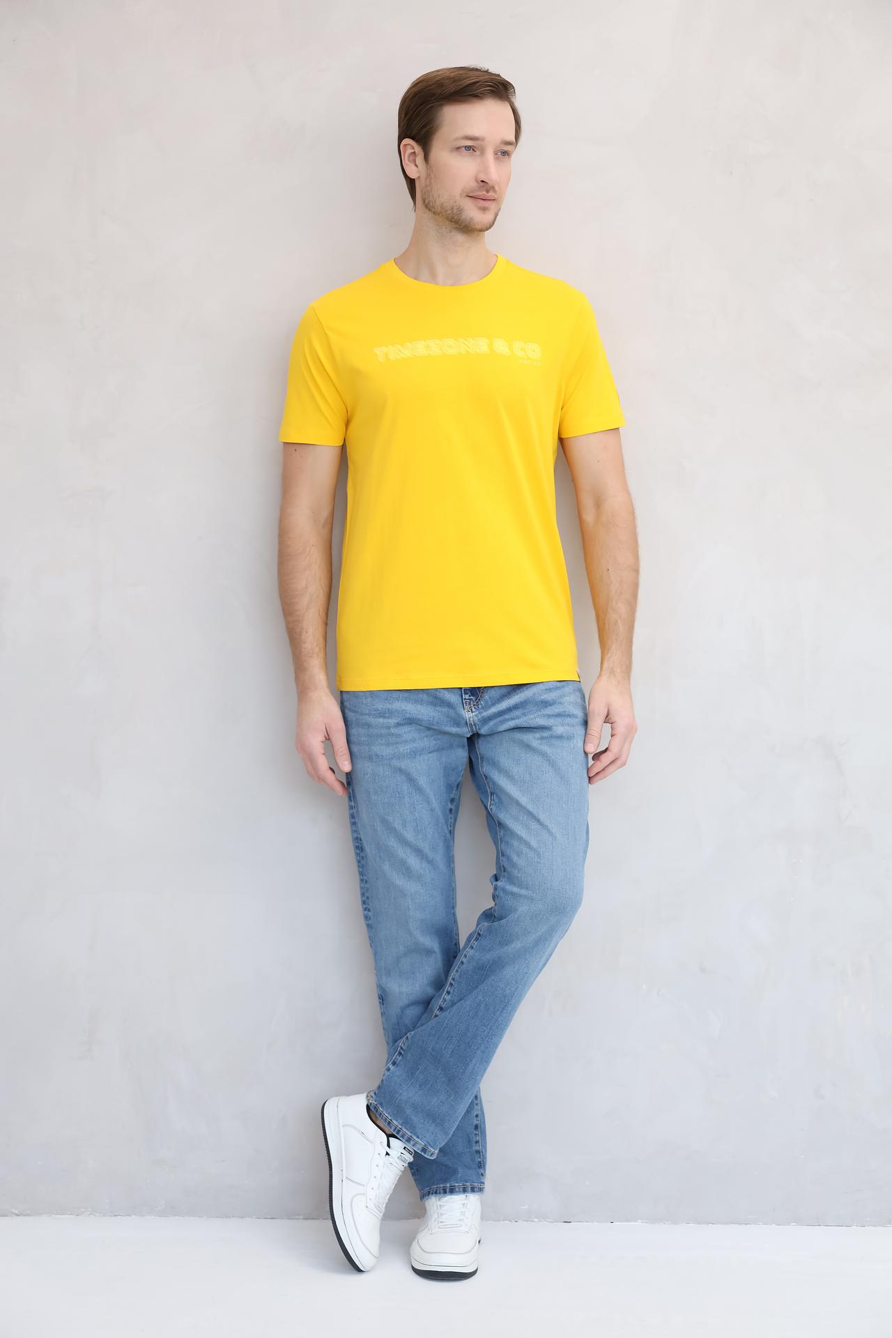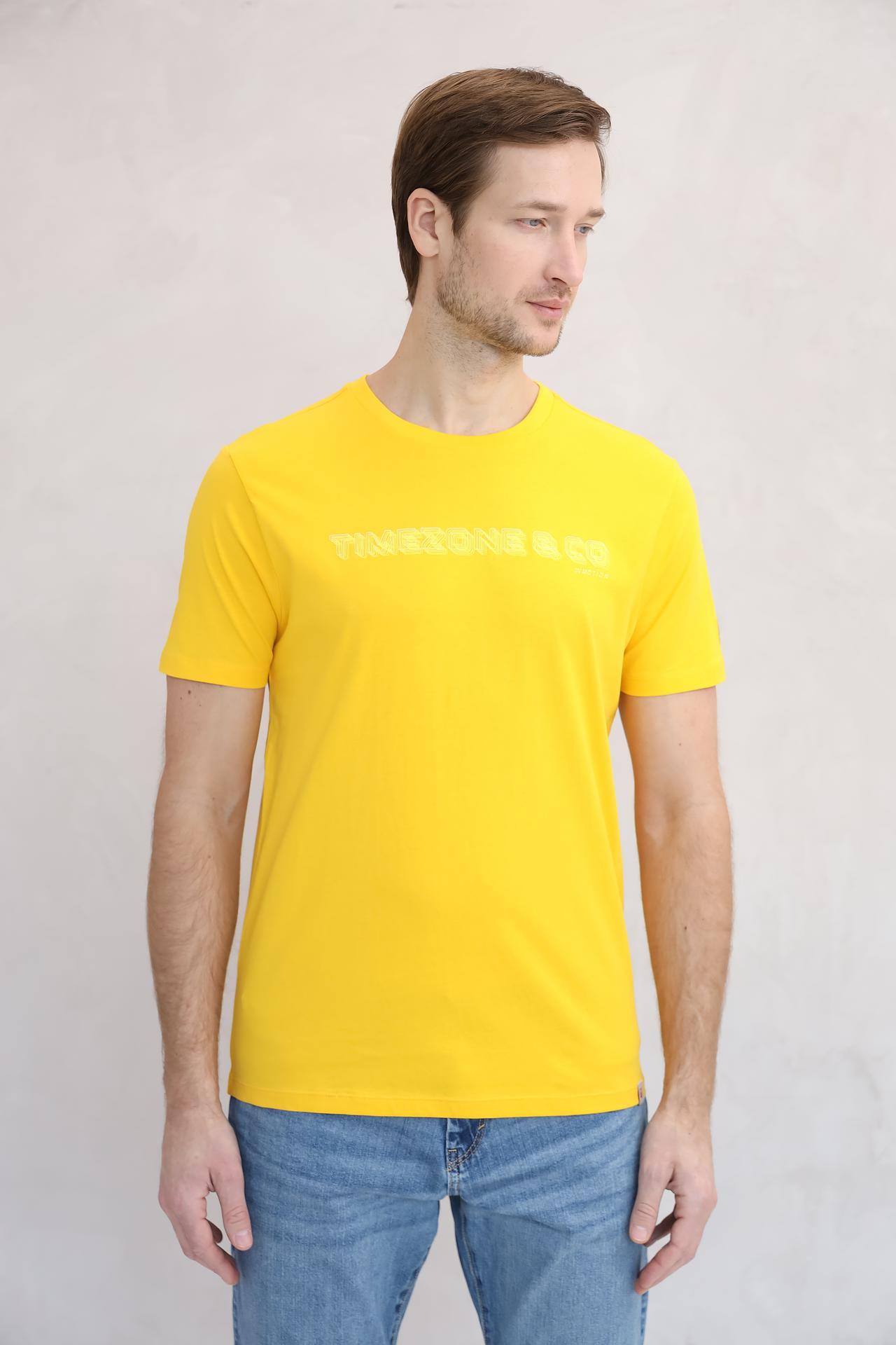 Футболка классического кроя с коротким рукавом и круглым вырезом горловины. На груди расположен стильный принт с логотипом Time Zone, добавляющий акцент.
