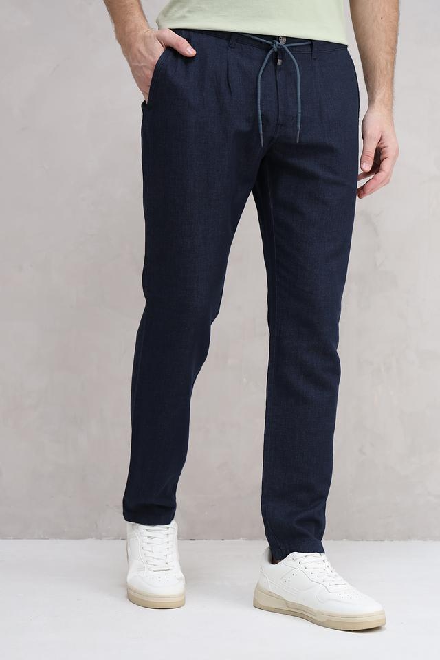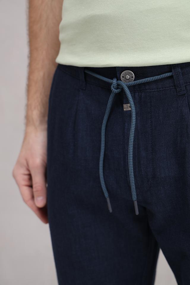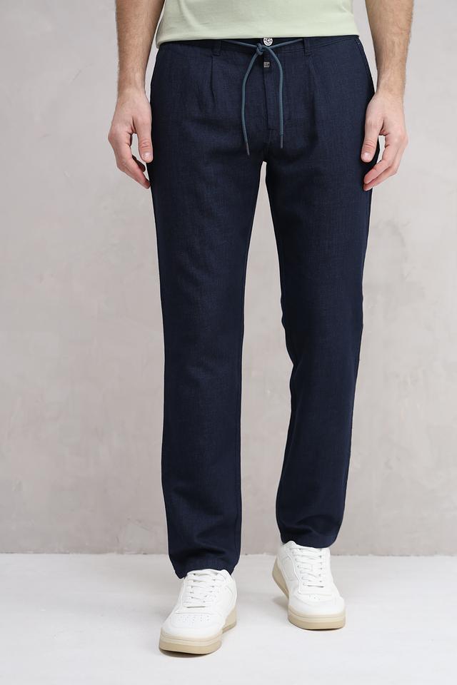 Мужские брюки Time Zone темно-синего цвета – это удобная и стильная модель с эластичным поясом и завязками. Брюки выполнены из 100% хлопка, обеспечивая комфорт в течение всего дня. Состав: хлопок 100%