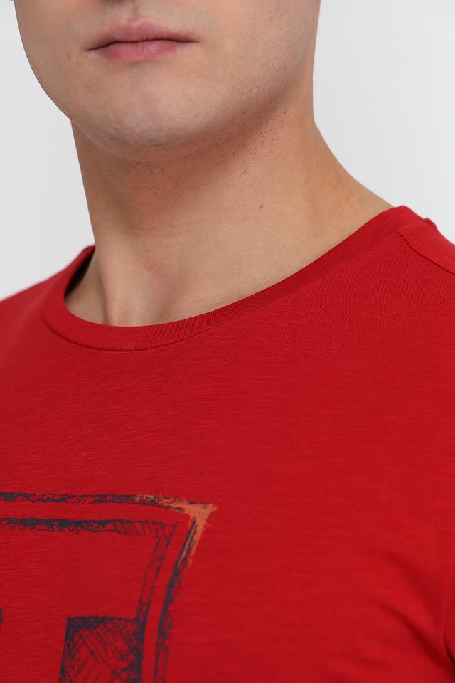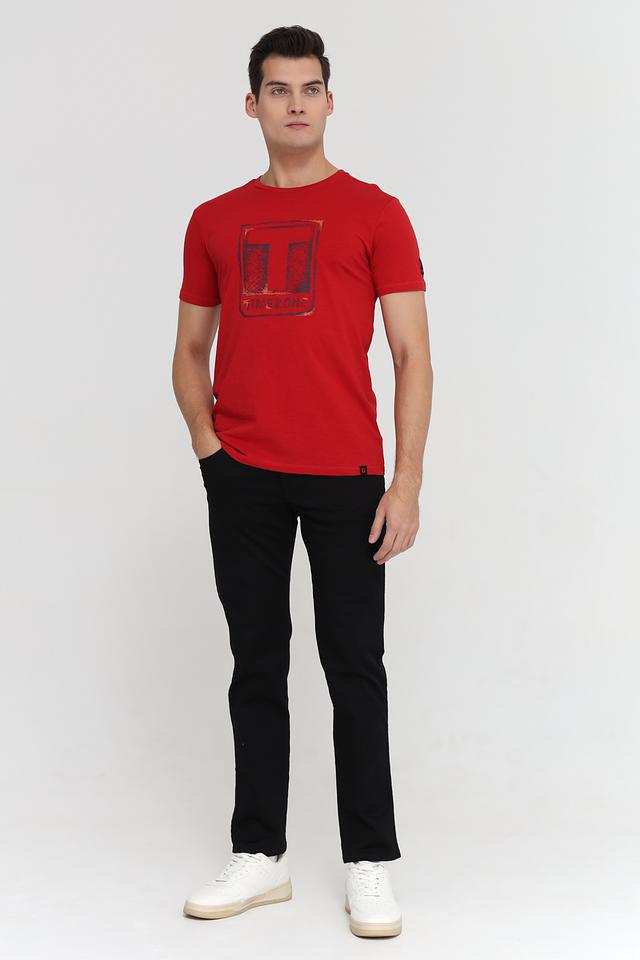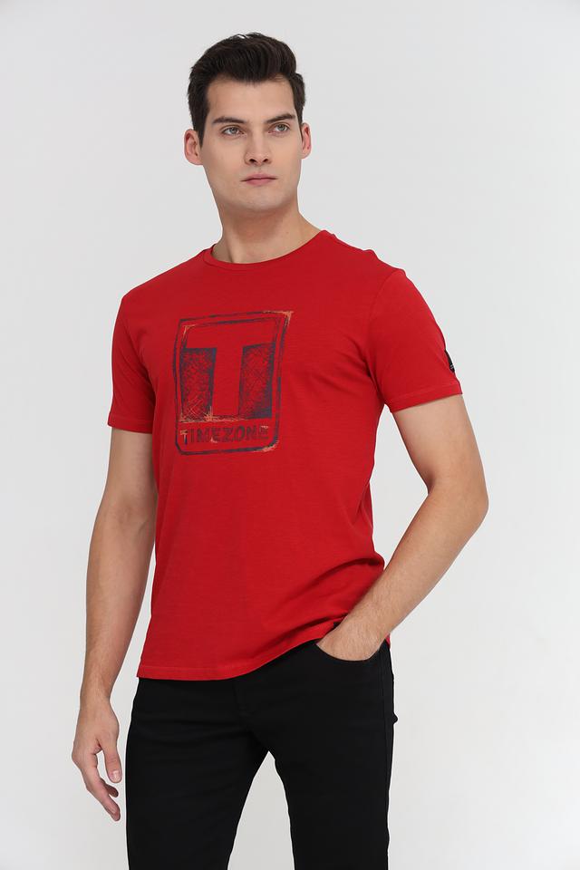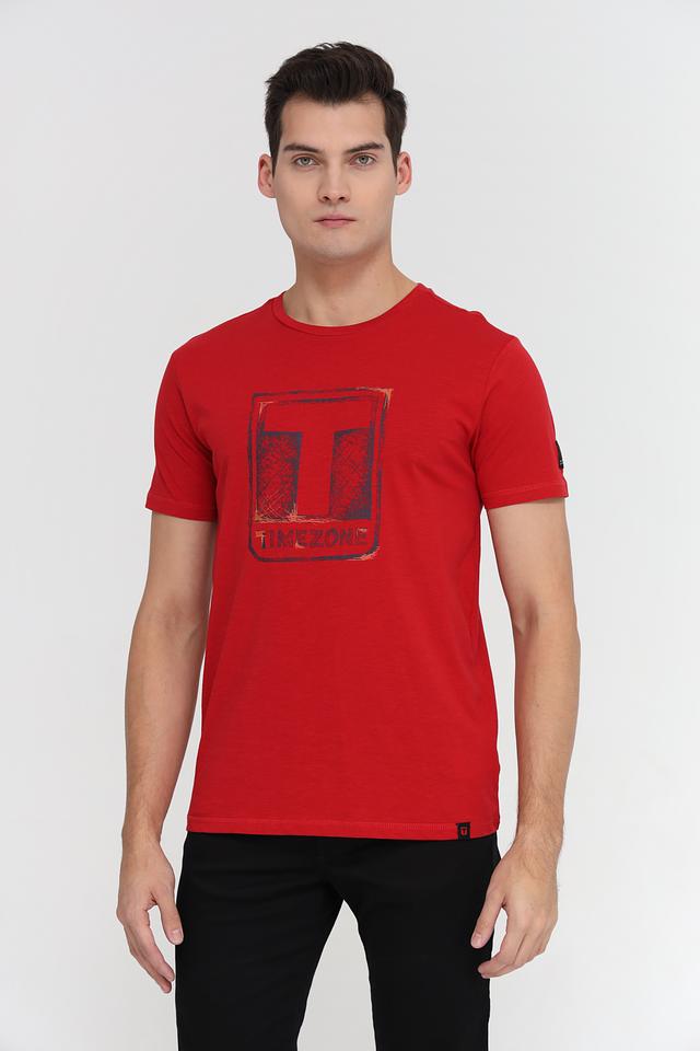 Мужская футболка Time Zone красного цвета с оригинальным графическим принтом. Изготовлена из 100% хлопка, обеспечивающего комфорт и воздухопроницаемость. Состав: хлопок 100%
