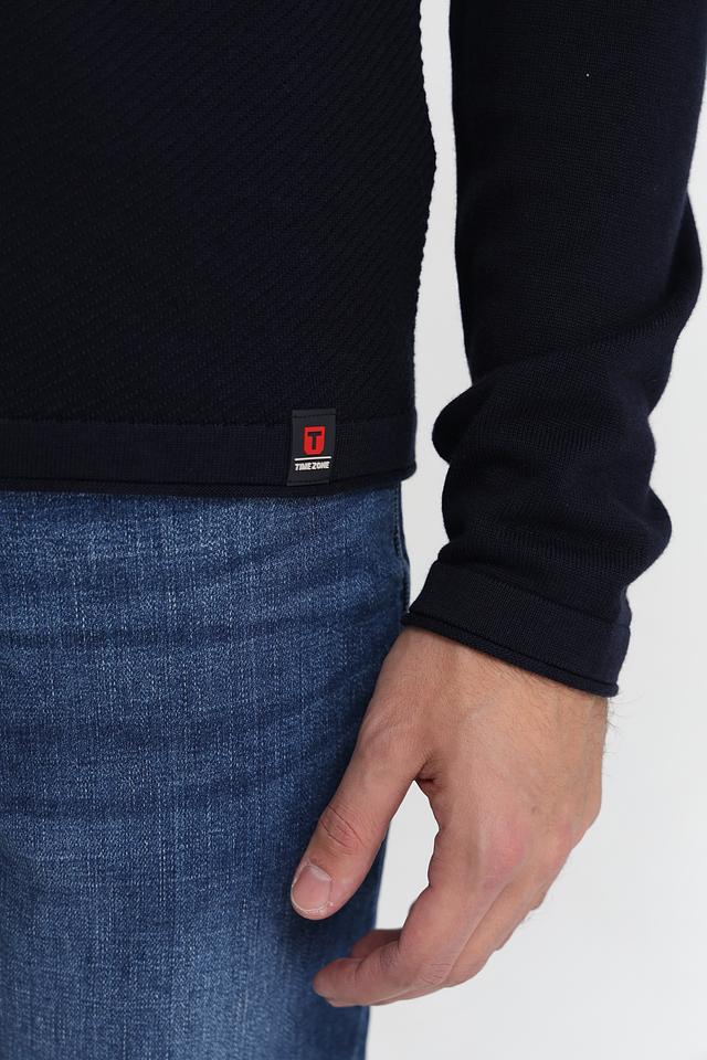 Мужской джемпер Time Zone тёмно-синего цвета – это стильная и комфортная модель на каждый день. Изготовлен из мягкого и приятного к телу сочетания вискозы и хлопка, обеспечивающего удобство в носке. Состав: вискоза 50%, хлопок 50%
