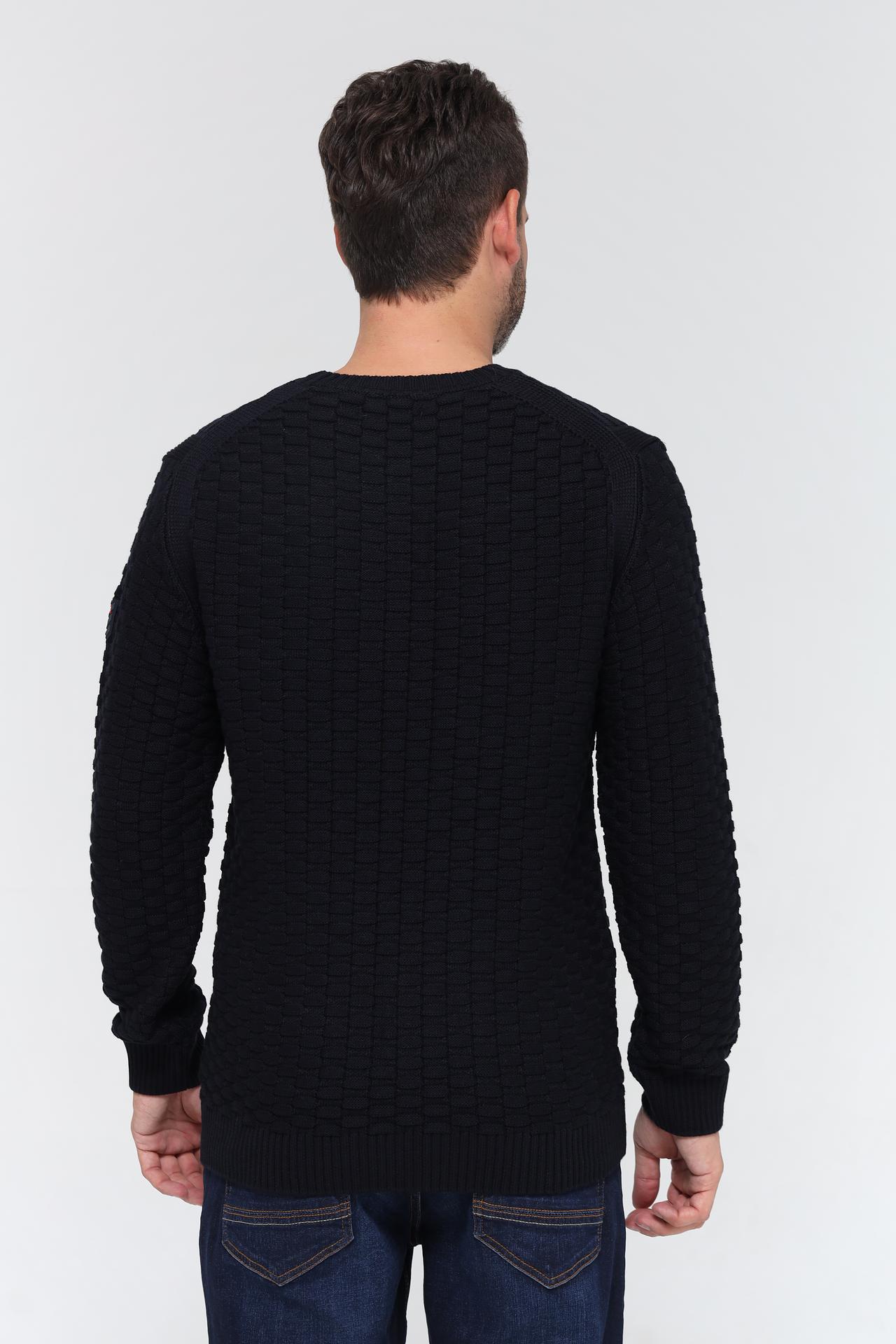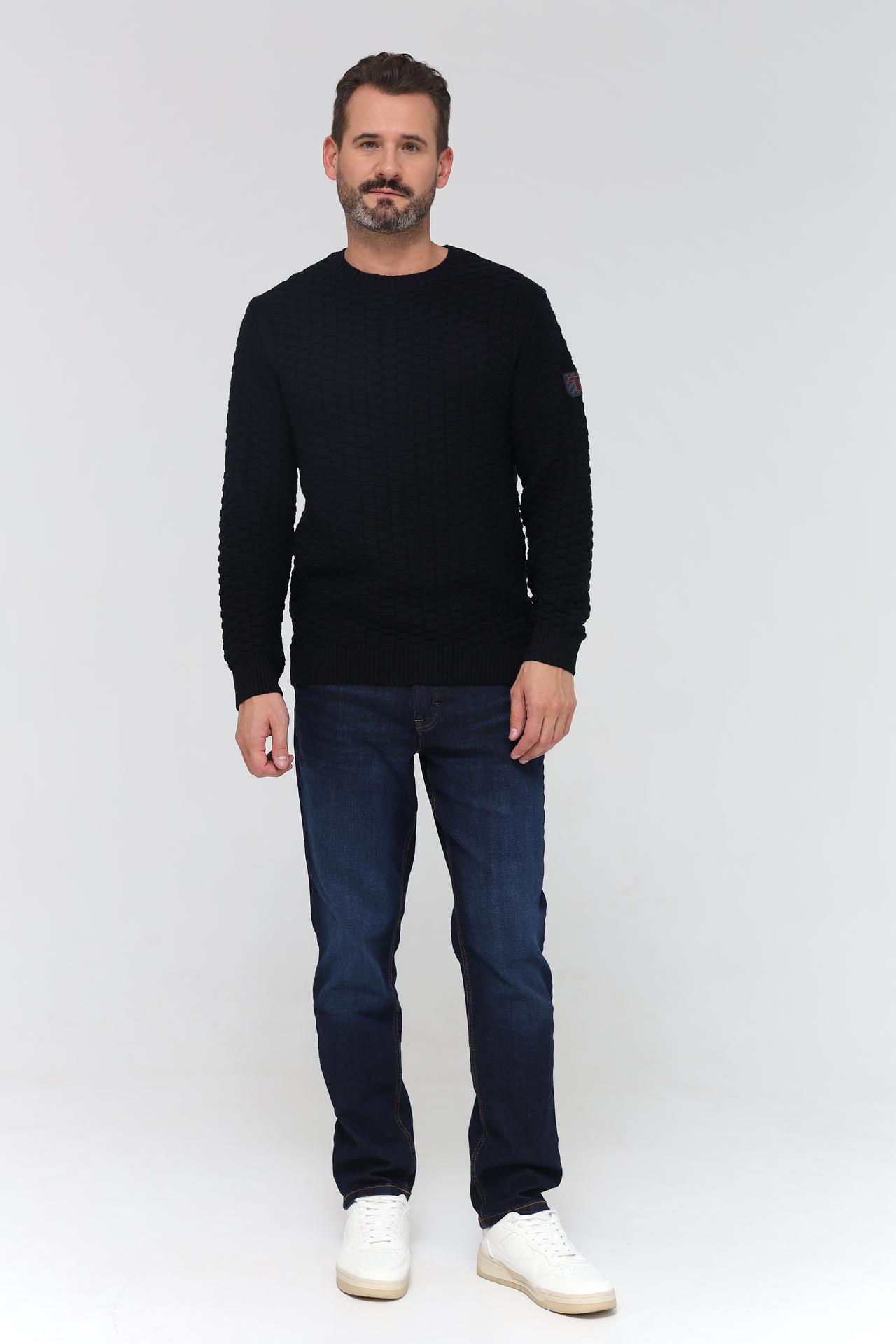 - Дизайн: Классический крой с круглым воротом и длинными рукавами. Фактурная вязка добавляет уникальности.