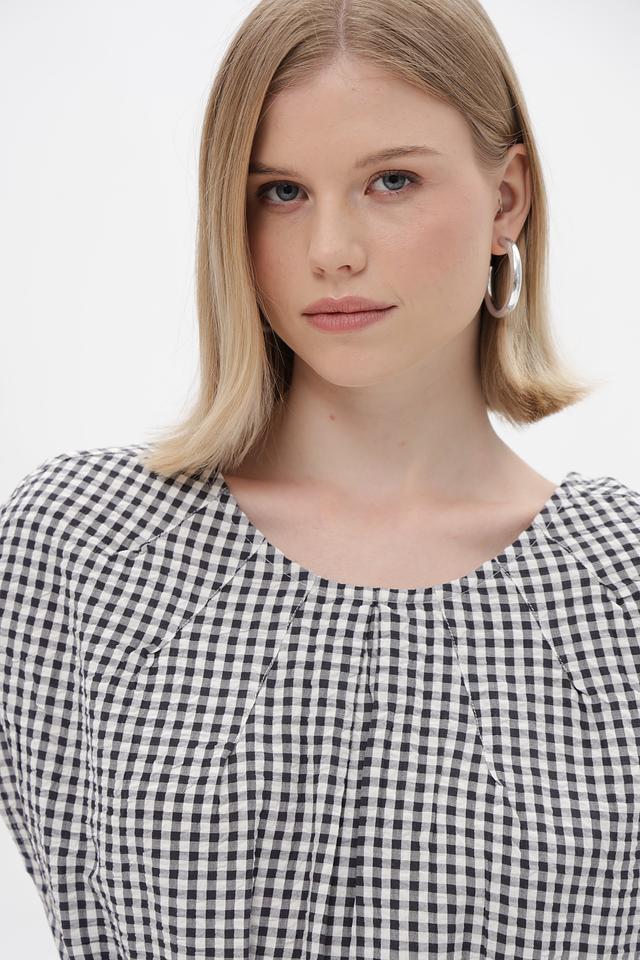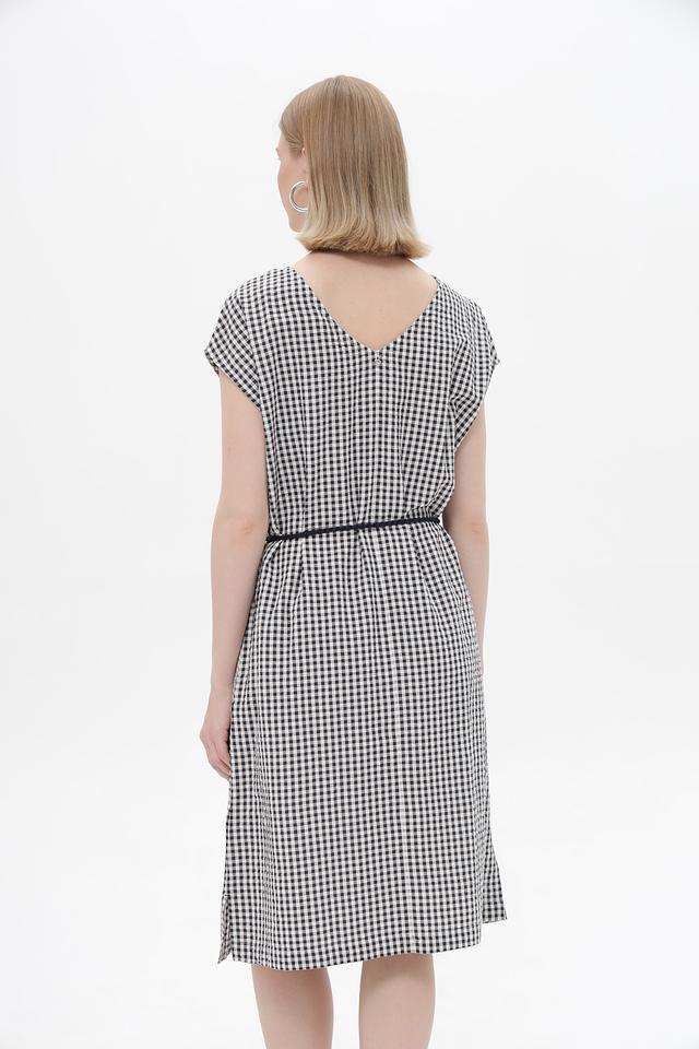 Это платье от Time Zone выполнено в классическом стиле и станет отличным дополнением к вашему гардеробу. Основной цвет – белый, дополненный чёрным клетчатым принтом.