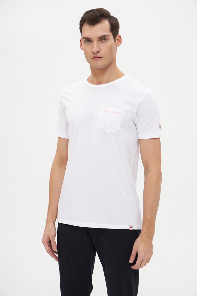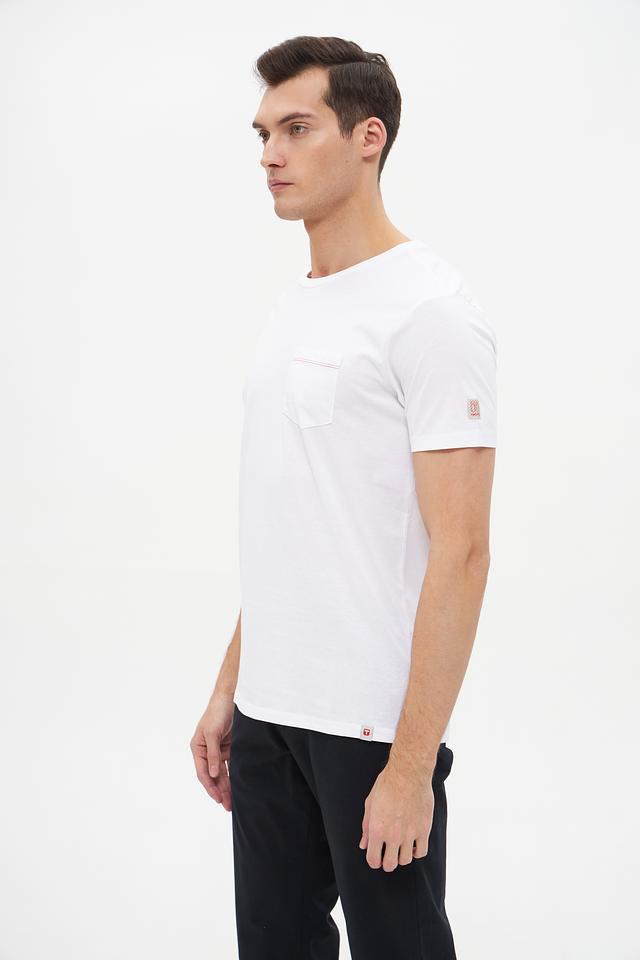 Белая футболка Time Zone из 100% хлопка с коротким рукавом и накладным карманом. Классический крой и мягкий материал обеспечивают комфорт в повседневной носке. Состав: хлопок 100%
