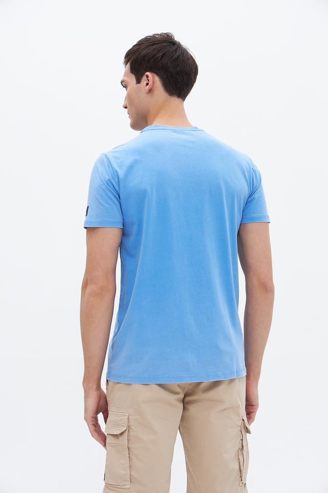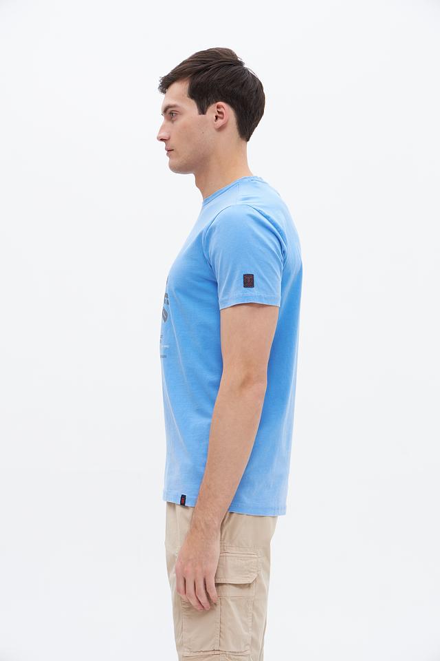 Голубая футболка Time Zone с ярким принтом в виде мотороллера – отличный выбор для создания повседневного образа. Изготовлена из 100% хлопка, обеспечивающего комфорт и воздухопроницаемость. Состав: хлопок 100%