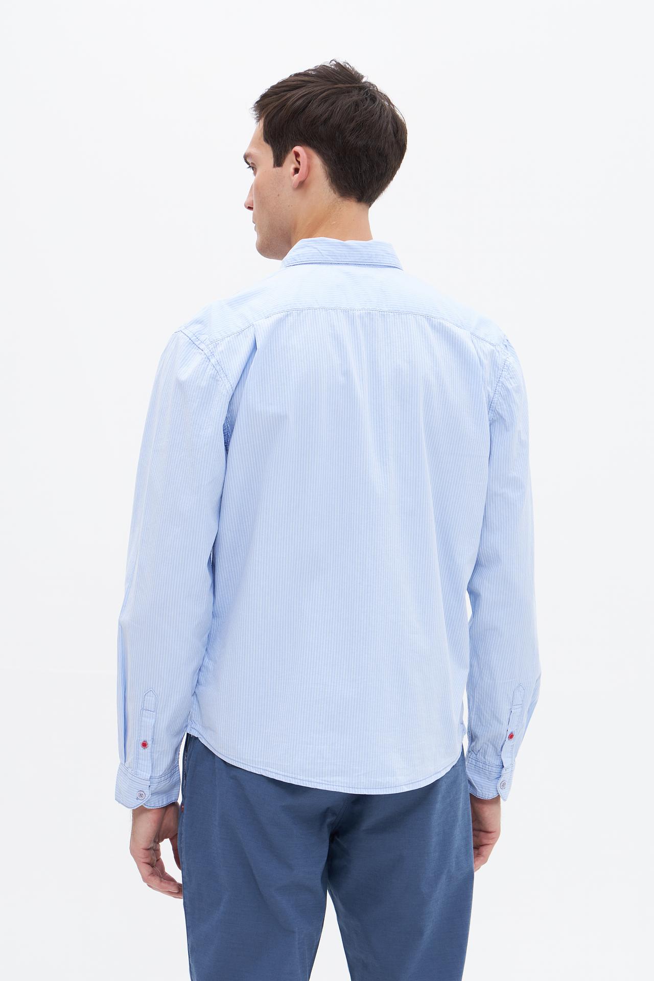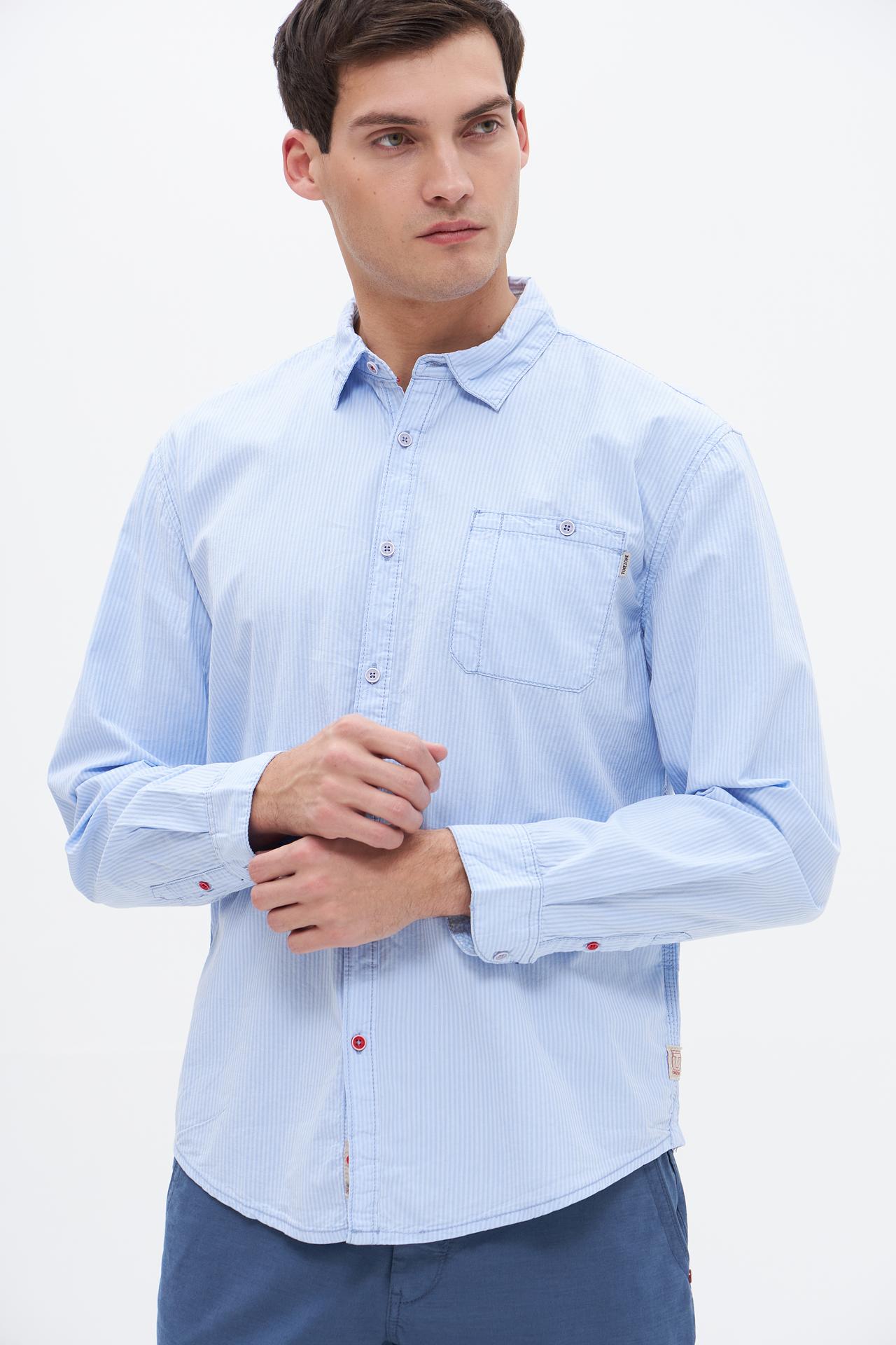Классическая мужская рубашка с длинным рукавом Time Zone. Модель выполнена в нежном голубом цвете в мелкую вертикальную полоску, что придает ей элегантности и универсальности. Рубашка идеально подойдет как для создания повседневных образов, так и для более формальных выходов. Мягкий и дышащий материал обеспечит комфорт в течение всего дня.
