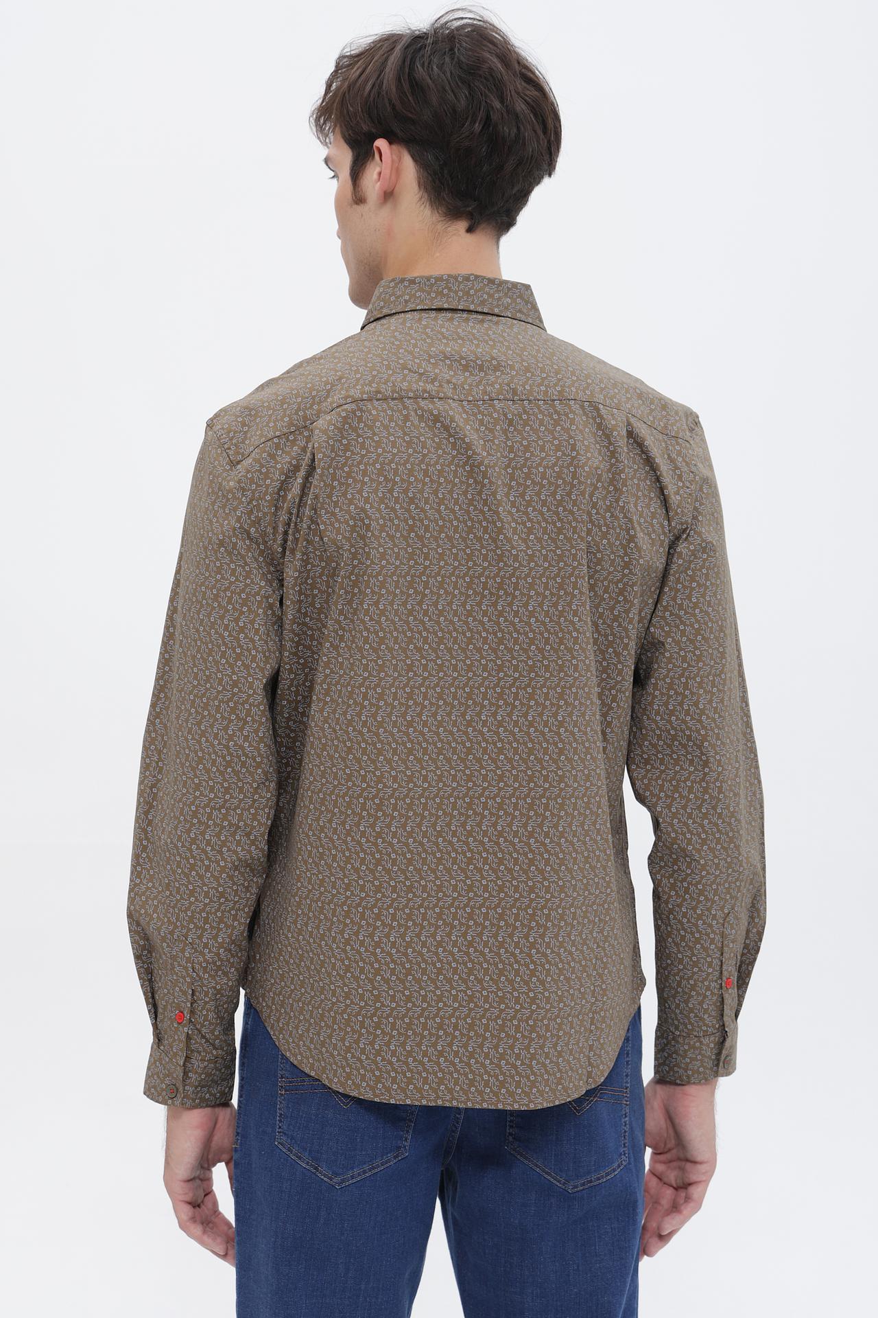 - Дизайн: Мелкий повторяющийся узор создает интересный визуальный эффект, делая рубашку выразительной, но не кричащей.