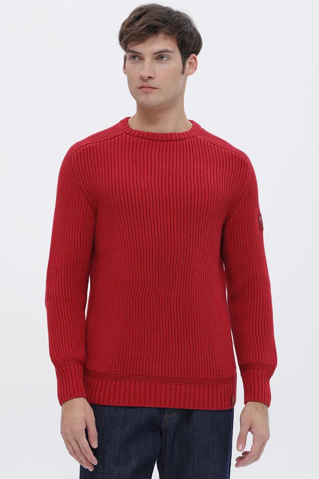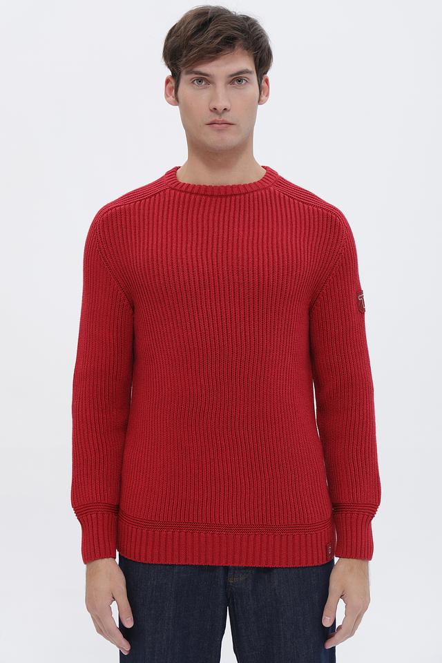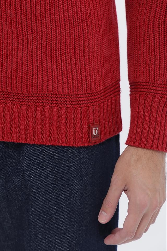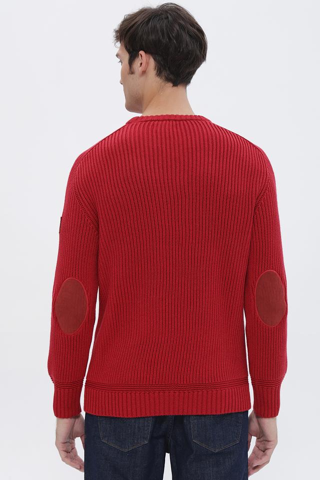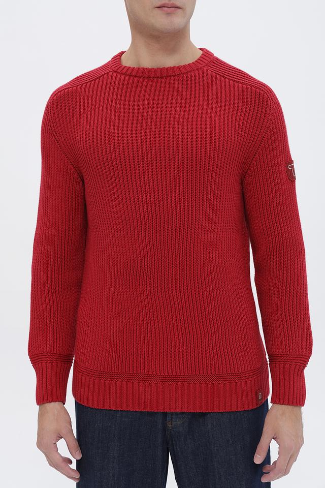 Мужской джемпер Time Zone насыщенного красного цвета с декоративными накладками на локтях. Изготовлен из мягкого и приятного к телу сочетания хлопка и полиакрила, обеспечивающего комфорт и долговечность. Состав: хлопок 52%, полиакрил 48%