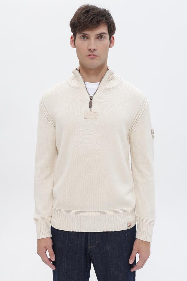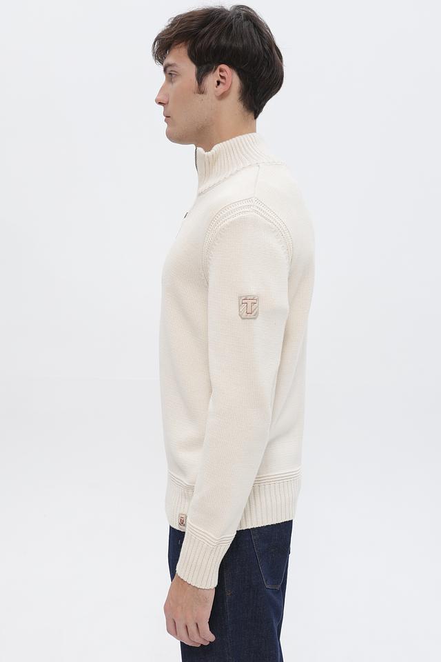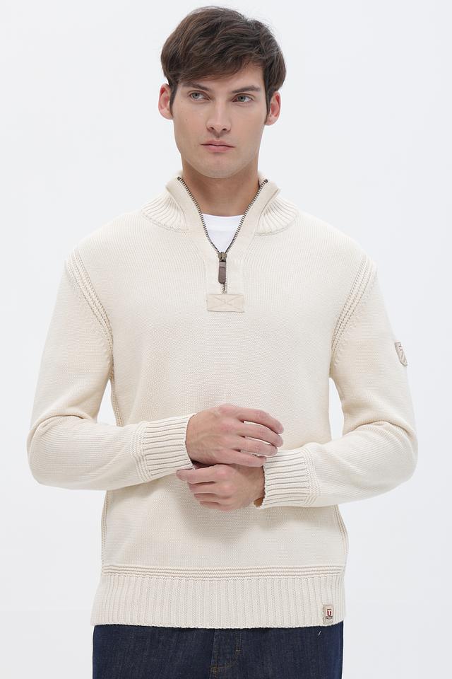 Бежевый джемпер от Time Zone с короткой молнией на воротнике – стильное и комфортное решение для повседневного гардероба. Изготовлен из мягкого сочетания хлопка и полиакрила, обеспечивающего удобство в носке. Состав: хлопок 52%, полиакрил 48%