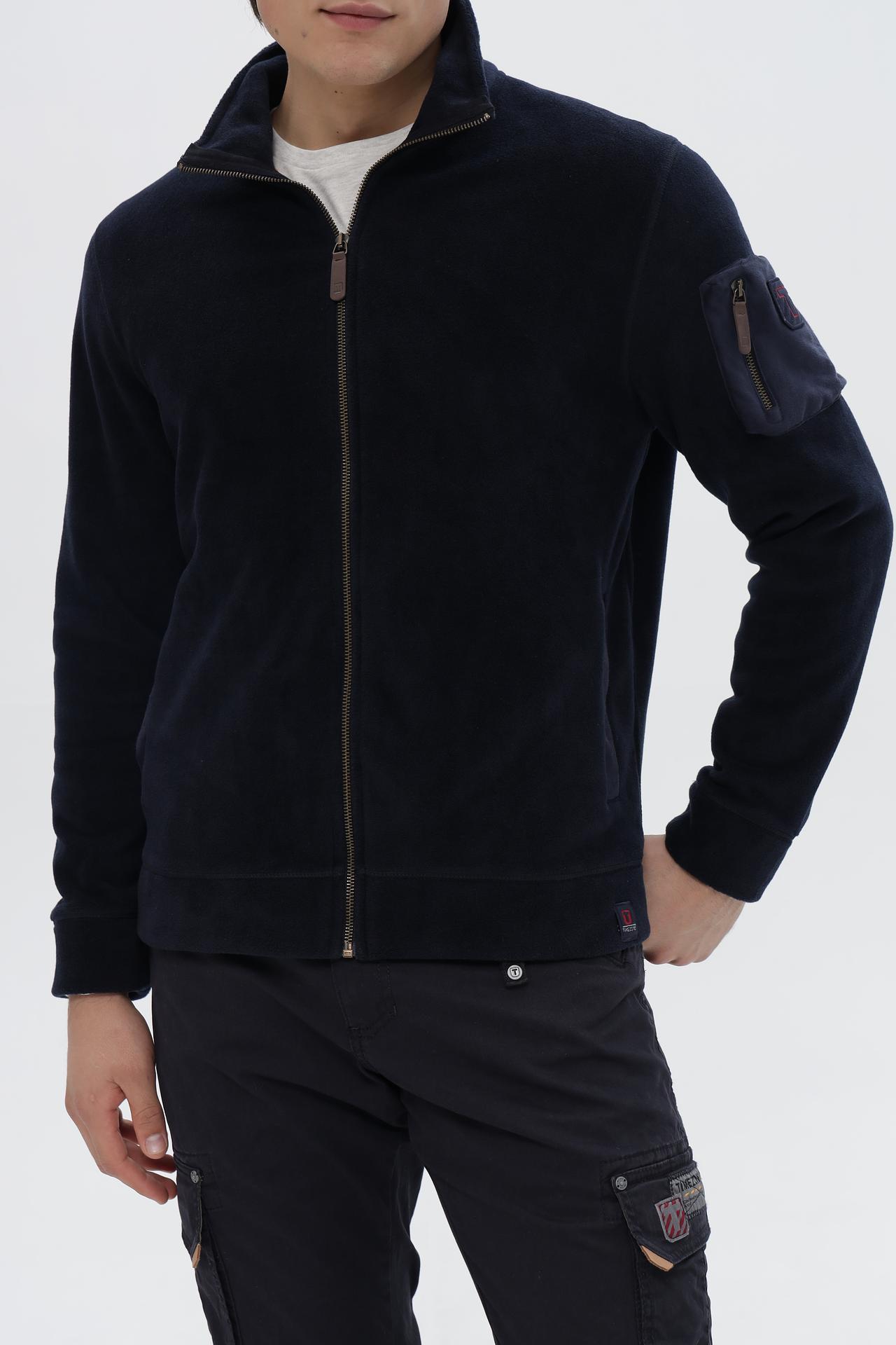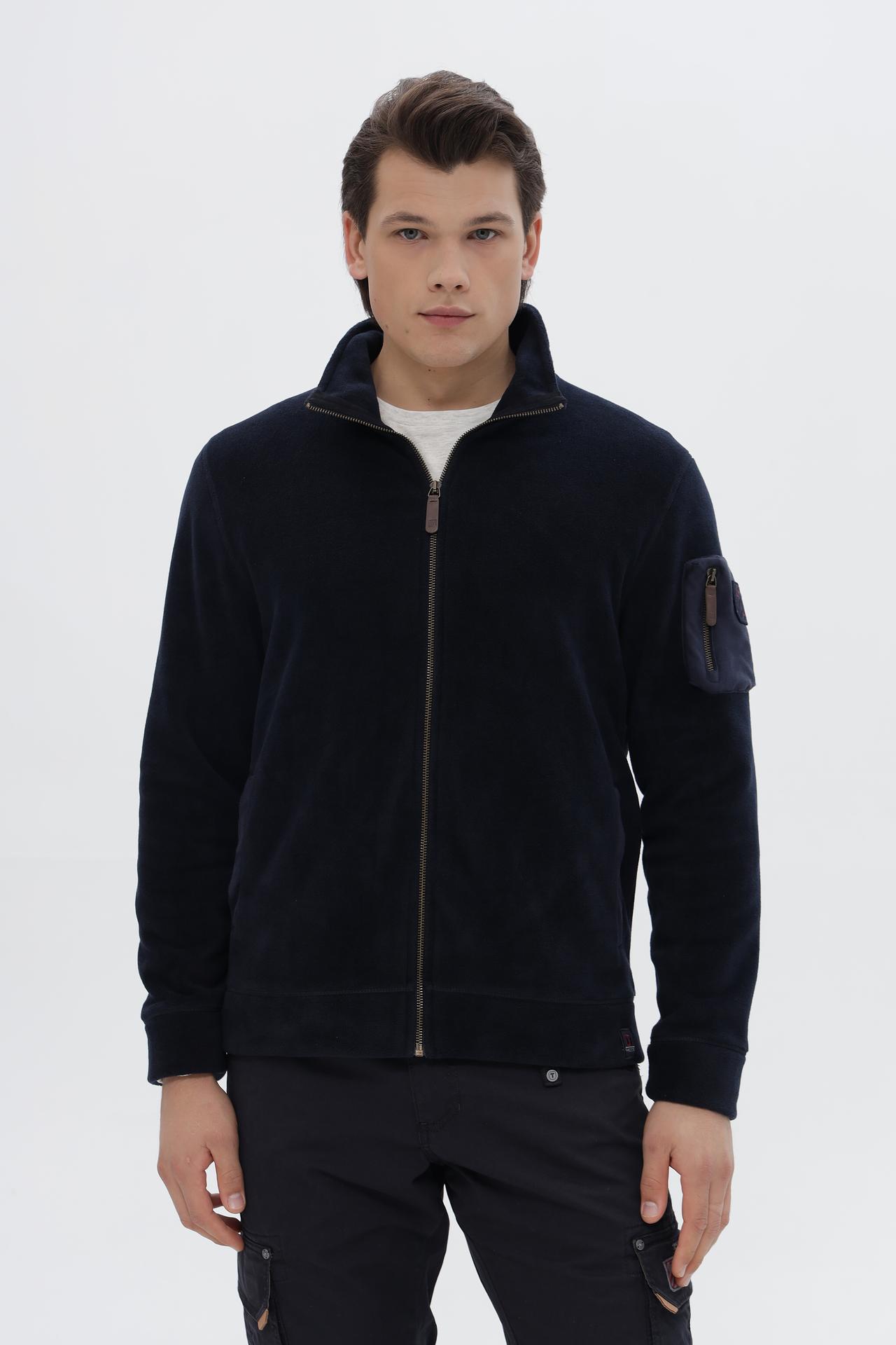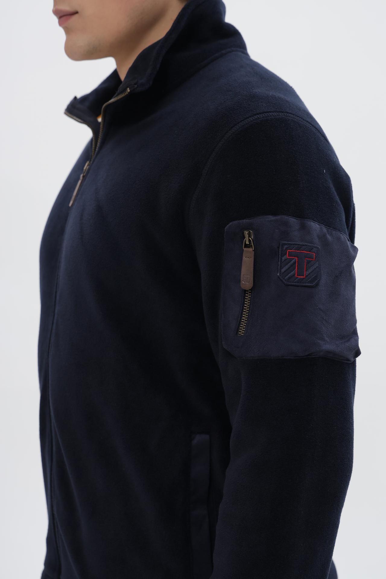 - Дизайн: Классический крой с высоким воротником и застежкой на молнию. Элегантная темно-синяя расцветка и стильная нашивка на рукаве придают изделию особый шарм.