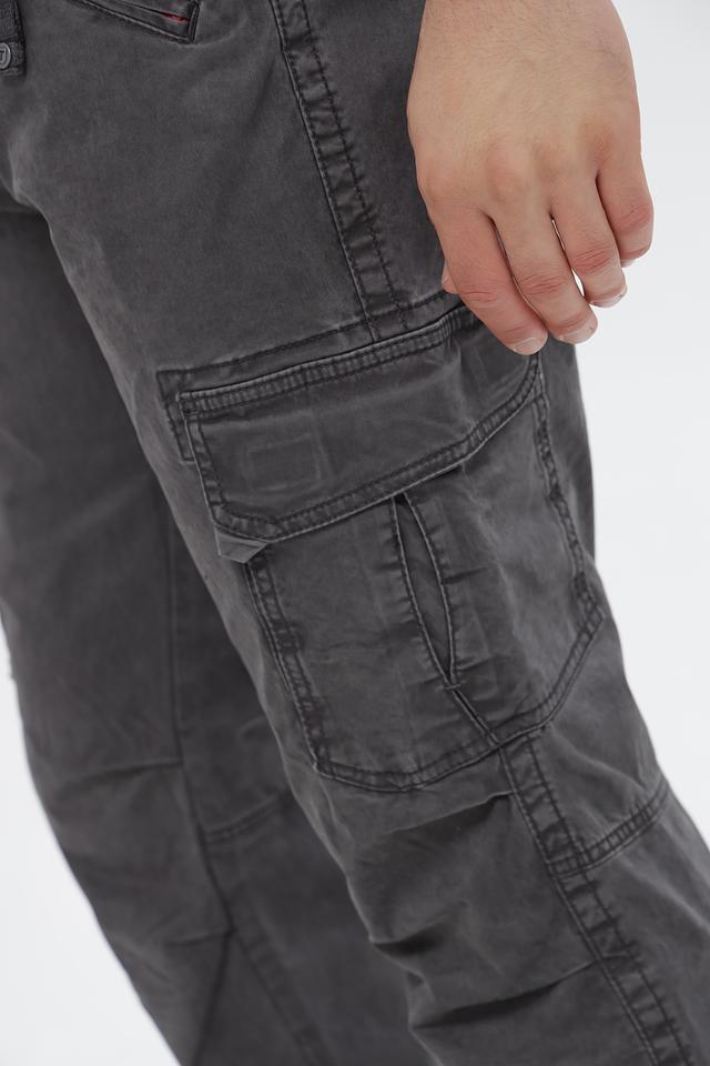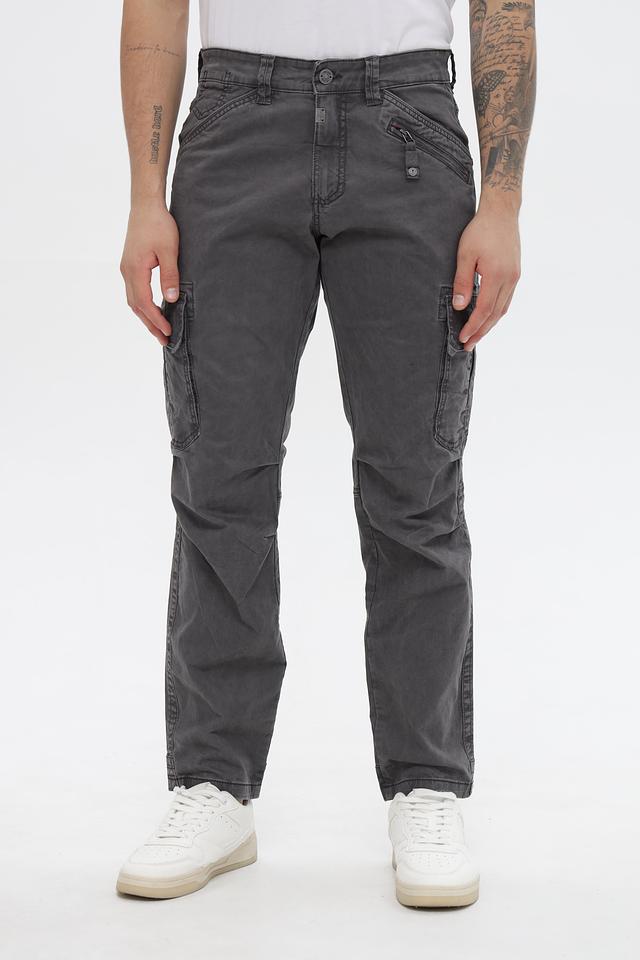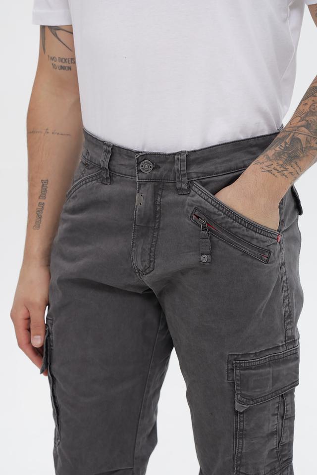 Мужские брюки карго от Time Zone выполнены из высококачественного хлопка с добавлением эластана, обеспечивающего комфорт и свободу движений. Основной цвет брюк – серый, с эффектом потертости, что придает им современный и непринужденный вид.
