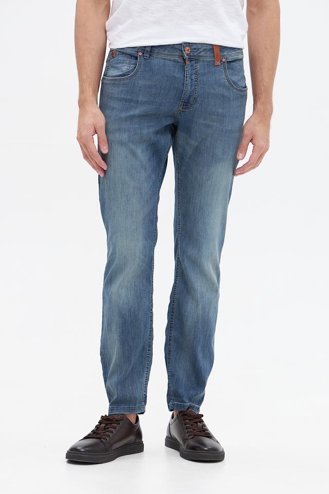 Представляем вашему вниманию классические мужские джинсы от бренда Time Zone. Модель выполнена в синем цвете с эффектом лёгкого выцветания, что придаёт ей стильный и современный вид.