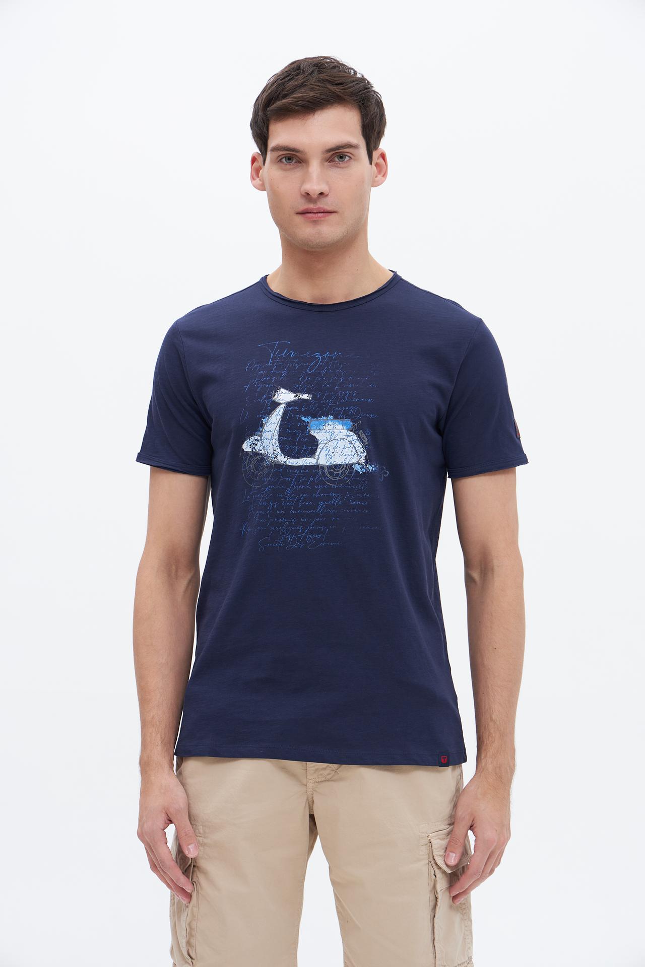 Time Zone футболка, тёмно-синяя, рисунок скутера